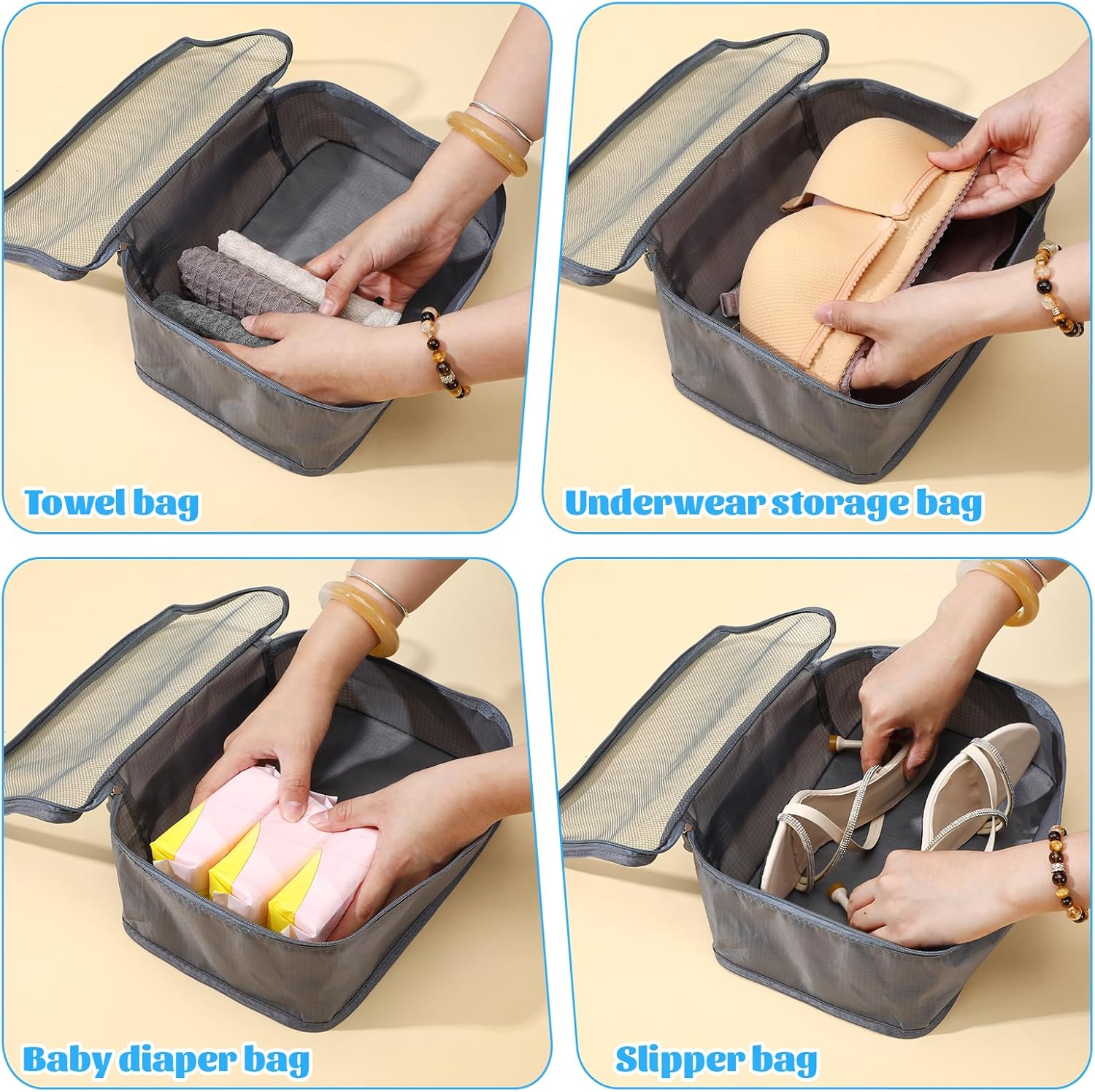 【Organization System】Mesh luggage organizers effectively separate different categories of items such as underwear, hats, towels, and short sleeves, keeping your belongings neatly arranged and easily accessible while saving valuable packing time and space.