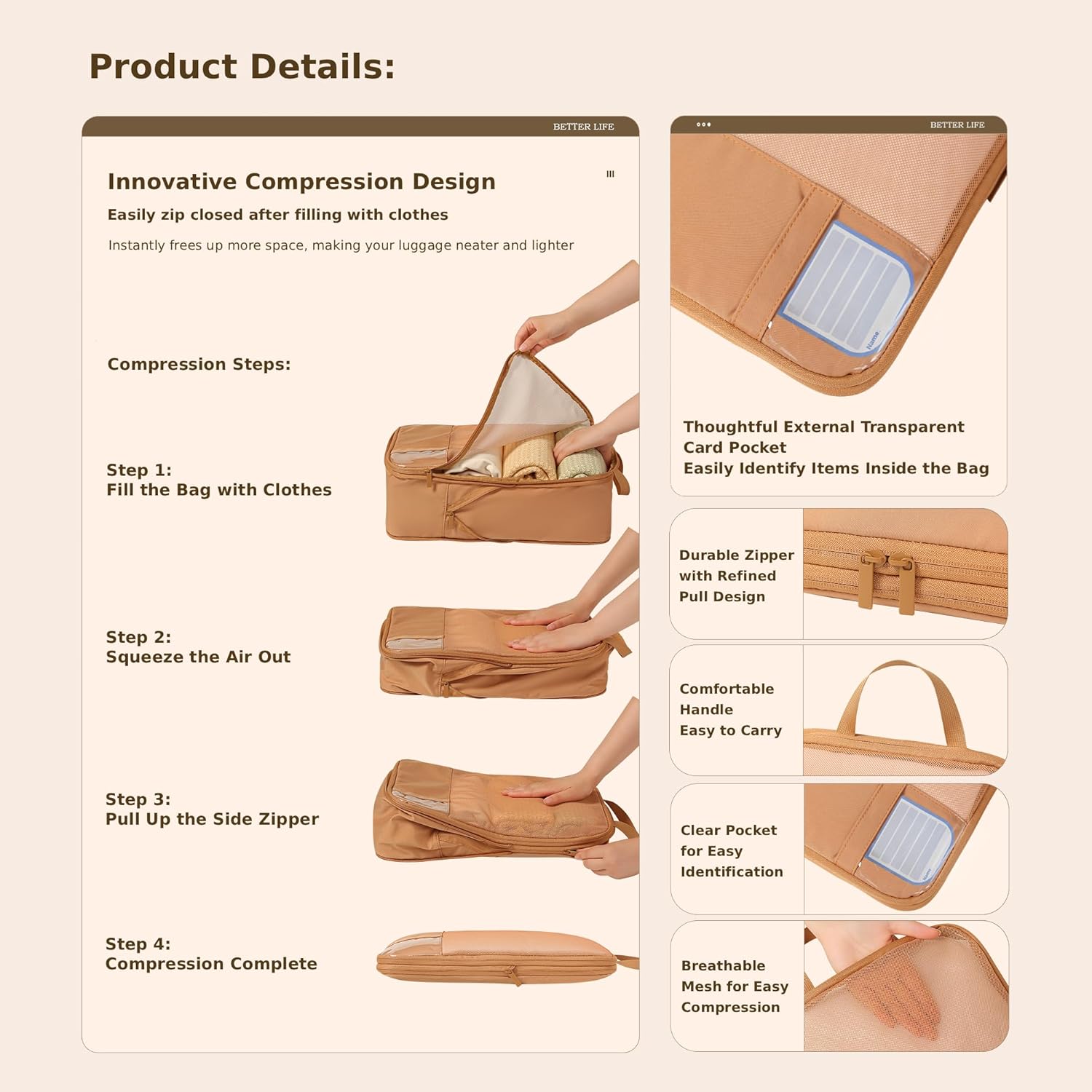 SPACE-SAVING DESIGN: Helps compress clothing and belongings to create more room in your luggage while keeping everything wrinkle-free