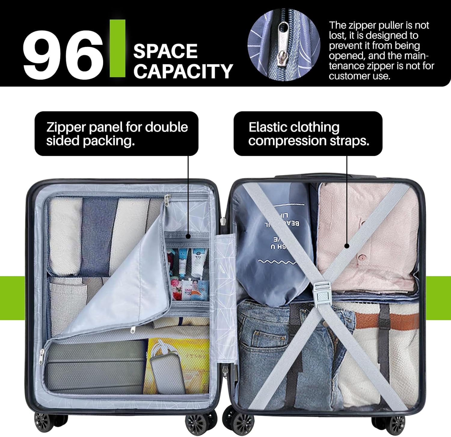 The AnyZip 28-inch Checked-Large Hardside Suitcase in AppleGreen is designed for travelers who need a durable, spacious, and secure luggage solution. Built with premium ABS+PC material, it offers the ideal balance of strength and flexibility, making it suitable for both short trips and extended travel. Its large size meets standard checked baggage requirements while still fitting in overhead bins or cargo holds. The suitcase features a built-in USB charging port, a TSA-approved lock, and a telescopic adjustable handle for convenience and ease of use.