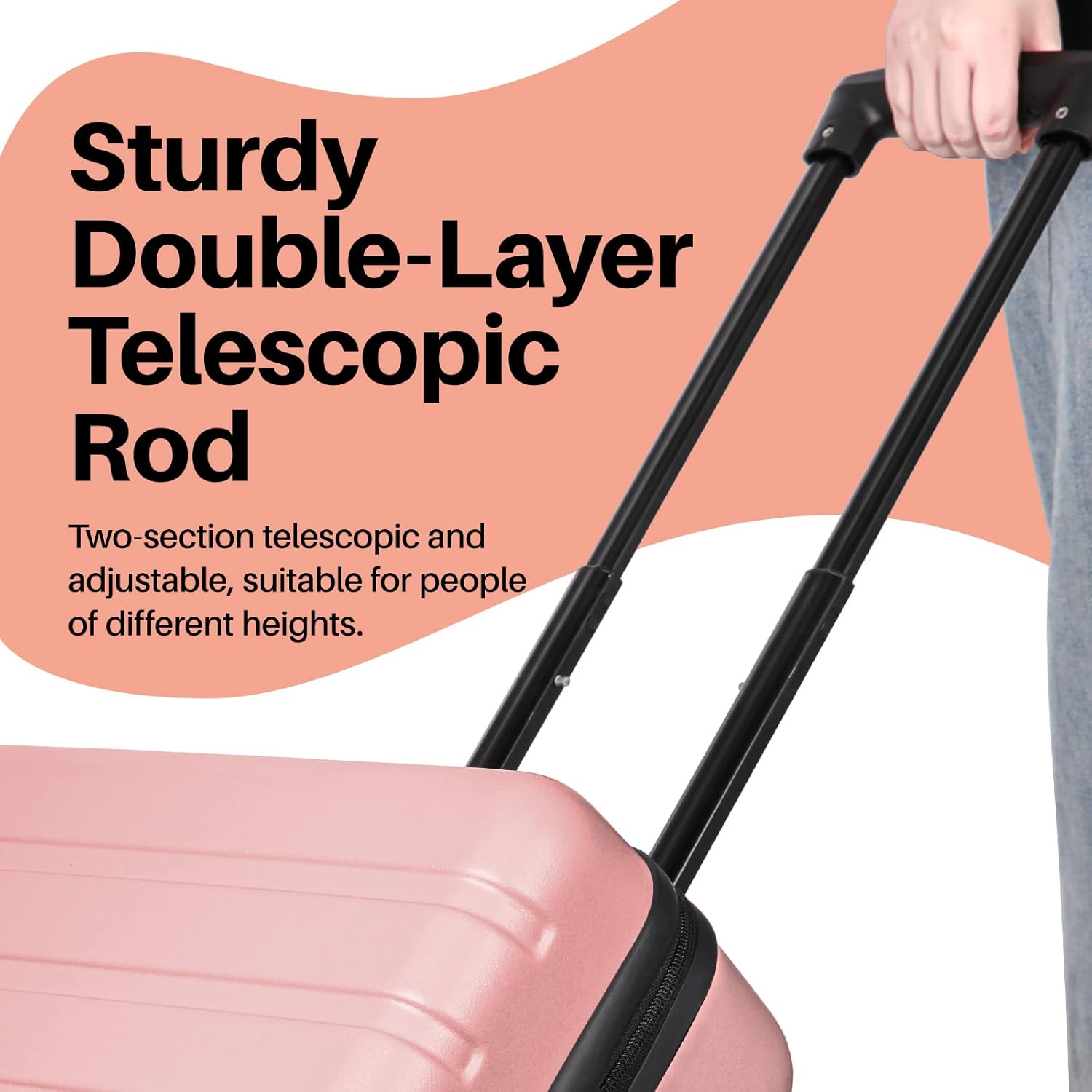 • Adjustable Handle: The telescoping handle extends to multiple height settings, accommodating users of different statures. This ensures a natural pulling motion and reduces strain on your arms and shoulders—especially valuable during long walks through airports or train stations.