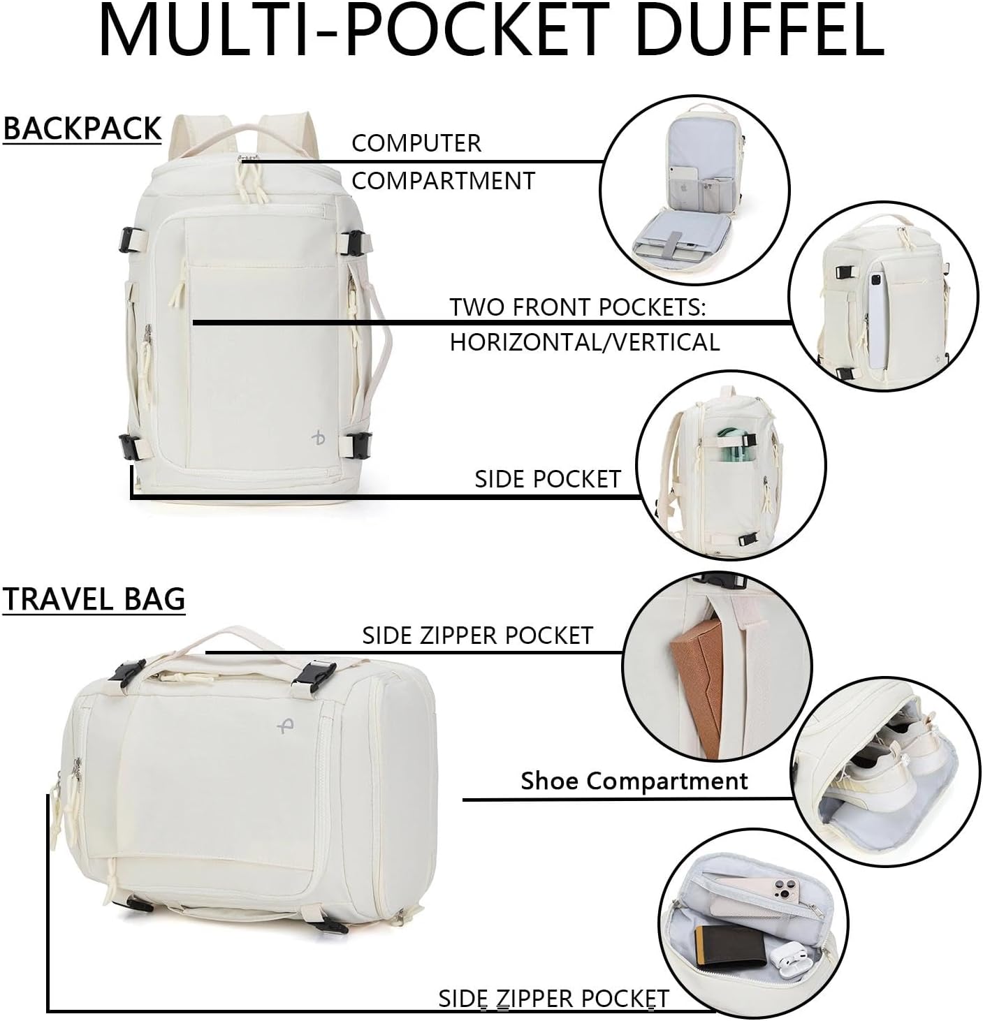 【Versatile Usage】 With the unique appearance, our versatile travel bag can be fitted in various occasions. It can be used as a gym bag, duffle bag, carry on backpack, overnight bag, range bag and tactical bag. Suitable for gym, workout, travel, football, hiking, weekender and many outdoor activities