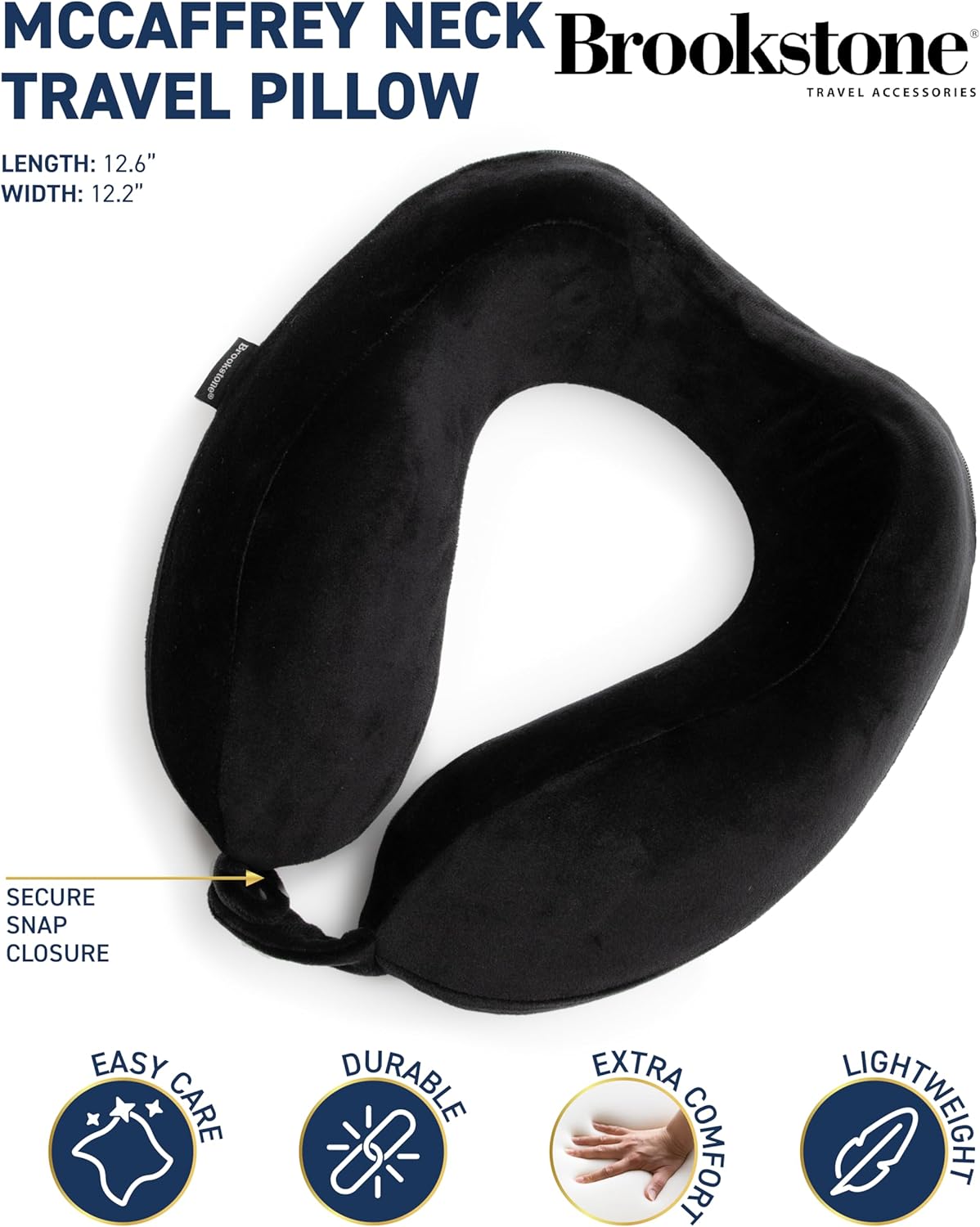 Brookstone x Christian McCaffrey Neck Travel Pillow – Lightweight U-Shaped Stuffable Memory Foam Travel Neck Pillow for Car, Airplane Travels and Sleep, Black