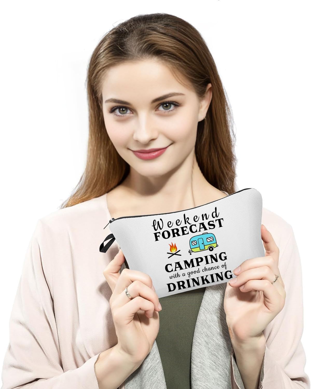 1.Exquisite Patterns: This makeup bag features ‘Weekend Camping’ print with double-sided printing design, boasting vibrant colors that resist fading. A variety of cute, fun, and stylish makeup bags are available for your selection