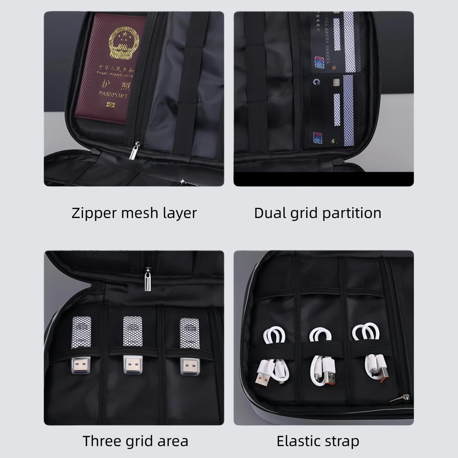 【Double-Layer Large Capacity】A compact body conceals ample space, featuring a double-layer structure with scientific organization. The bag can easily hold AirPods, chargers, data cables, hard drives, power banks, and up to 10 digital accessories, eliminating tangled wires in your bag. A must-have for business trips, travel and work,making every space fully utilized.You no longer need to search around; just open and access items instantly, saving time and effort.