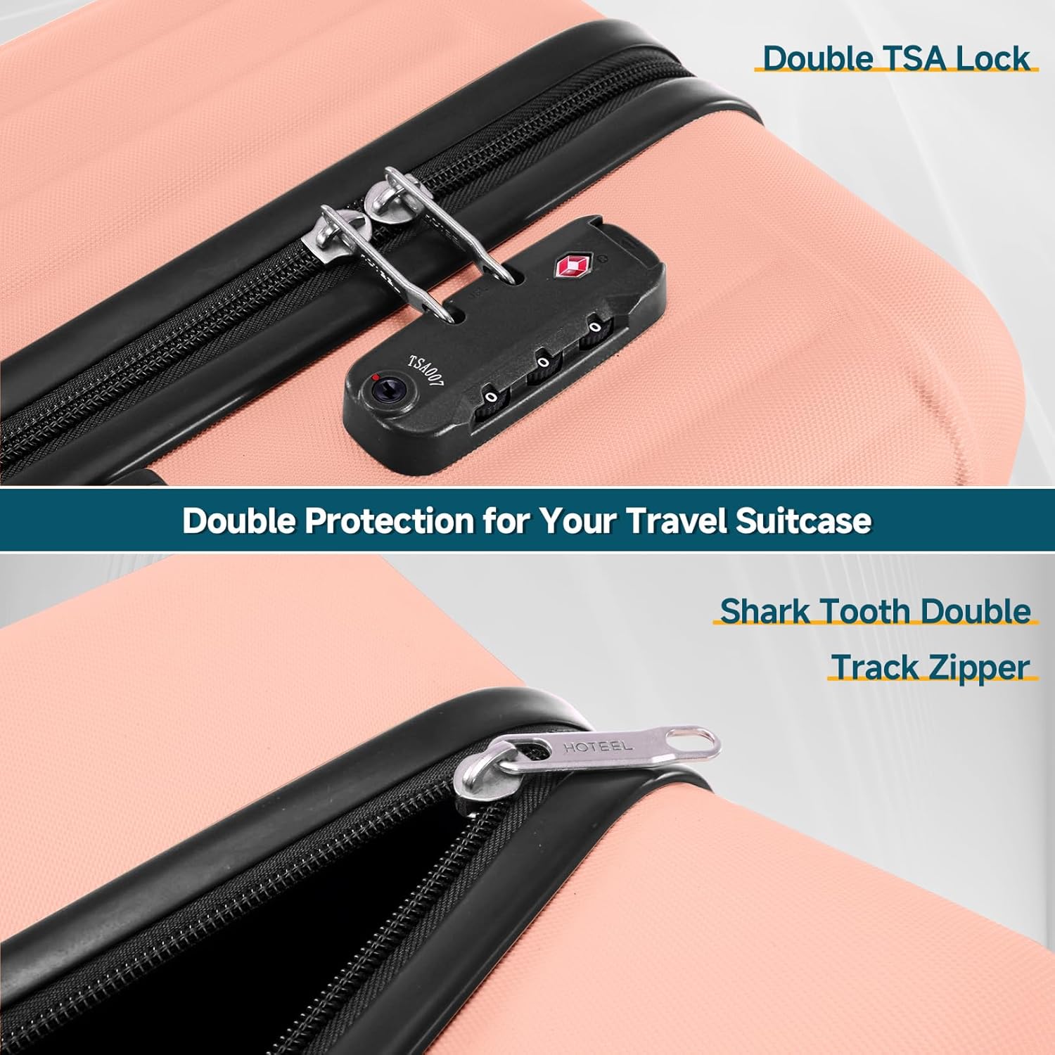 - TSA-Certified Lock & Shark Tooth Zipper: A secure, government-compliant combination lock allows Transportation Security Administration agents to inspect your luggage without damaging the case. The upgraded shark tooth zipper adds extra strength, significantly reducing the risk of bursting under pressure or rough handling.