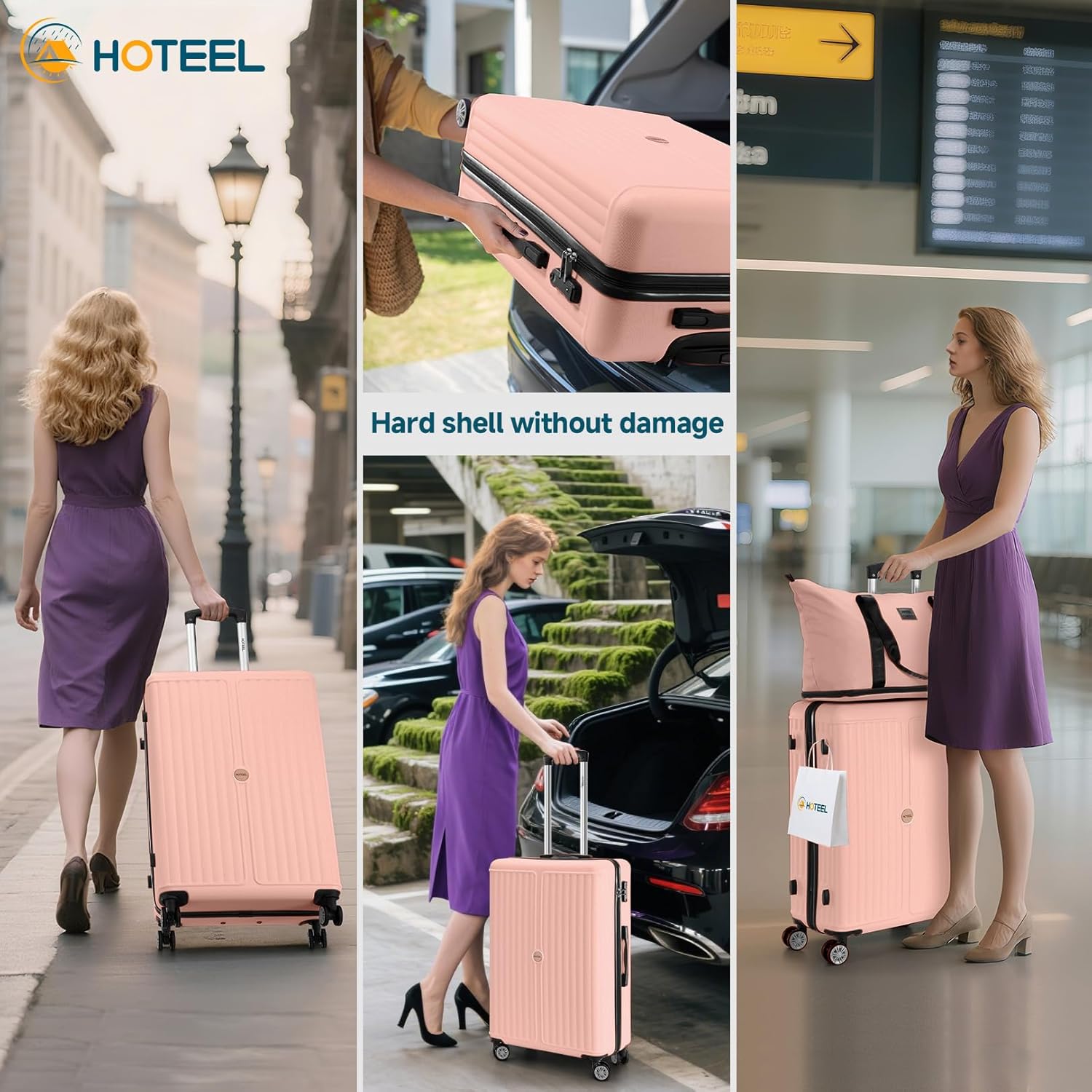 - Set Contents: One 20-inch main suitcase, one expandable handbag (10cm vertical extension), one small cosmetic pouch