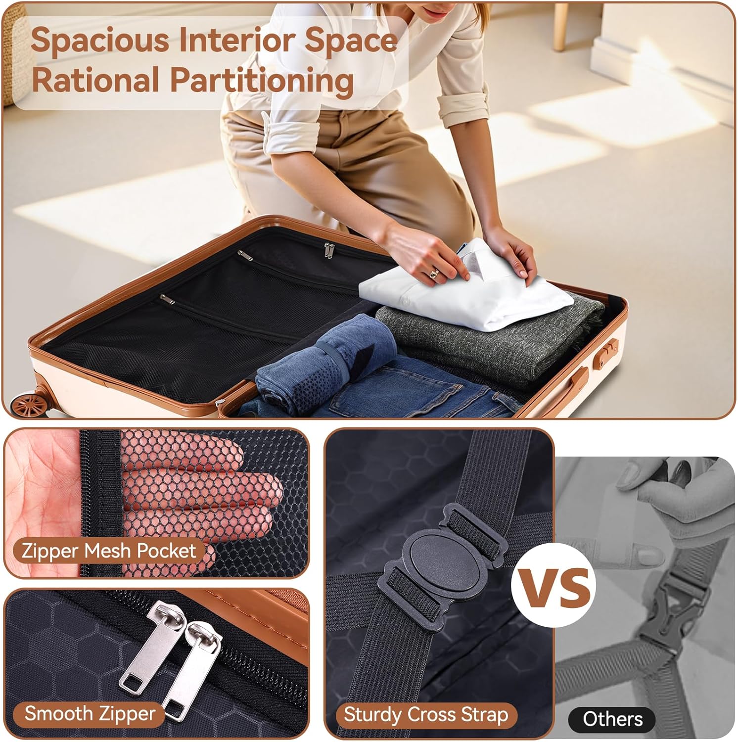 - TSA-Approved Lock: Ensures your belongings stay secure while allowing airport security to inspect without damaging the luggage.