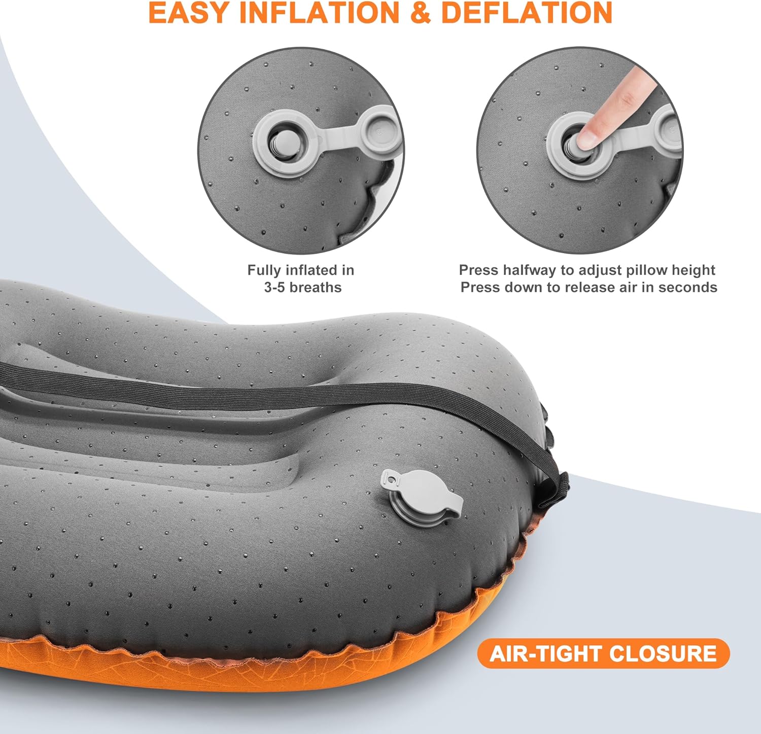 - Portable Inflatable Design: Equipped with a built-in high-efficiency air valve that allows complete inflation or deflation in just three seconds. When fully deflated, it folds down to the size of a standard water bottle, enabling easy storage in backpacks, luggage, or travel bags. This makes it ideal for compact gear needs during camping, hiking, backpacking, or beach trips—offering freedom from the heavy inconvenience of conventional pillows.