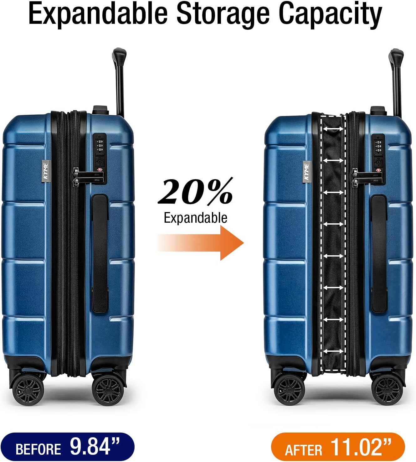 KYME Carry On Luggage 22x14x9 Airline Approved Expandable