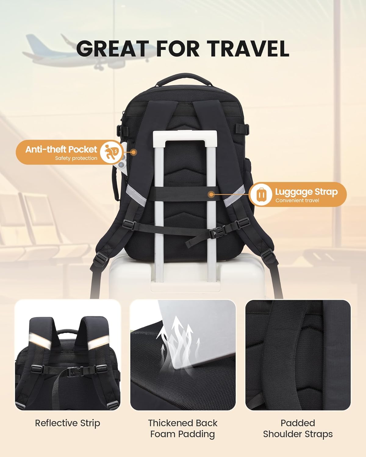 • Versatile Use Across Scenarios: Beyond travel, this backpack excels in everyday situations. Students will love the secure laptop sleeve (accommodating devices up to 17.3 inches) and structured pockets for textbooks and stationery. Office workers appreciate its professional black aesthetic and all-day comfort for daily commutes. Weekend adventurers benefit from its rugged build and ergonomic support for light trekking or urban exploration. It truly functions as a reliable companion whether you’re heading to campus, the office, or an international destination.