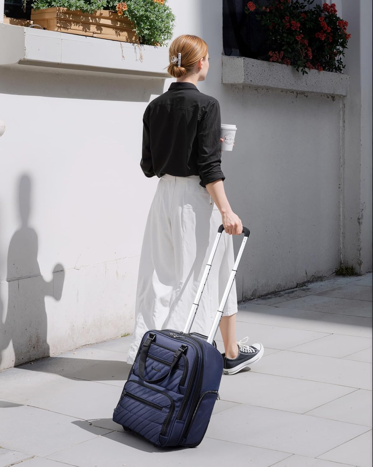 • Luggage Attachment Strap: Easily clips onto larger suitcases for hands-free convenience when boarding or navigating terminals.