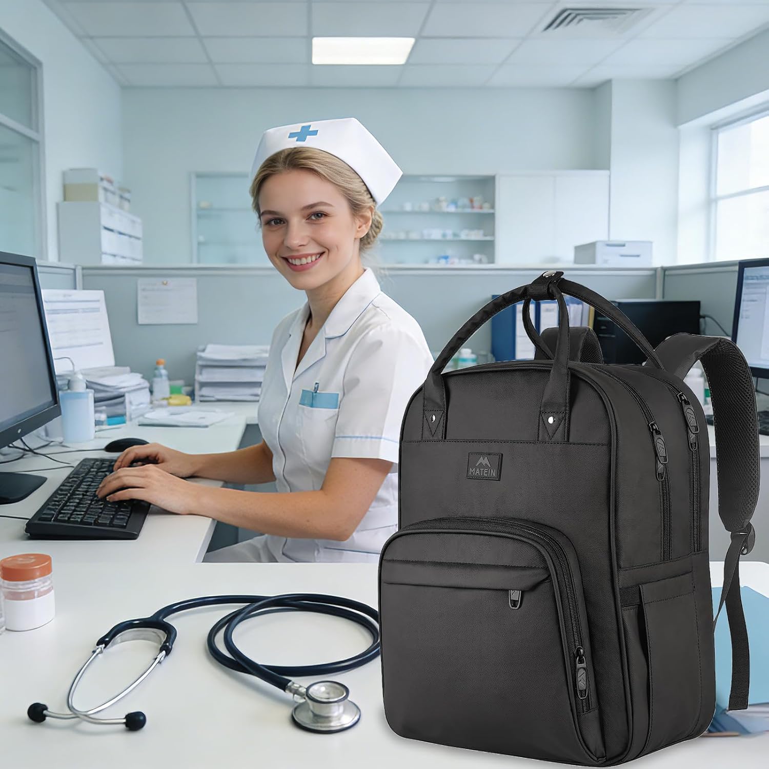 The MATEIN Nurse Backpack is a purpose-built solution for healthcare professionals who demand organization, durability, and comfort in their daily work. Designed with nurses, first responders, and clinical staff in mind, this extra-large backpack combines practicality with thoughtful ergonomics. Measuring 19 x 13 x 7.6 inches, it offers ample room for essential tools, personal items, and technology—all while remaining lightweight and easy to carry. Whether you’re making home health visits, managing a busy clinical rotation, or simply need a reliable laptop bag for professional use, this backpack adapts to your workflow.