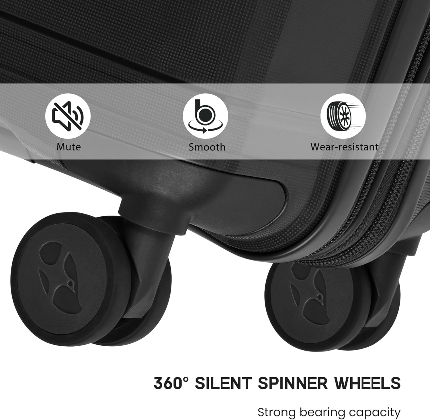 - 360° Spinner Wheels: Four durable spinner wheels provide smooth gliding across various surfaces. Engineered with a precision shaft center and thickened wheel skin, they are wear-resistant, quieter than traditional wheels, and capable of handling heavy loads—ideal for navigating busy airports or tight spaces.
