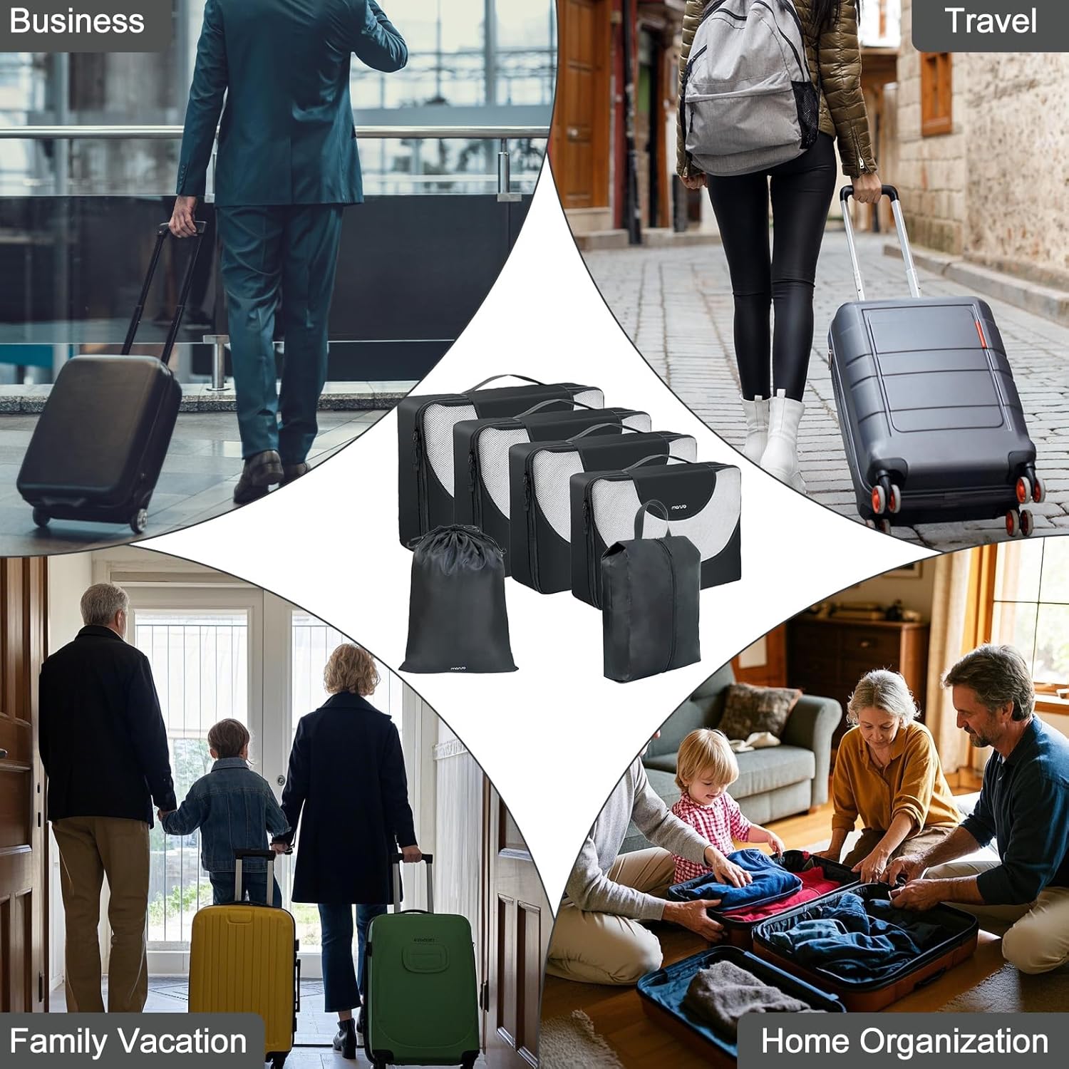 MOSISO 6 Set Packing Cubes for Travel Essentials, Suitcase Organizer Bags Set for Luggage, Light Weight Space-Saving Travel Accessories Expandable Packing Organizer Divider Road Trip Bags, Black