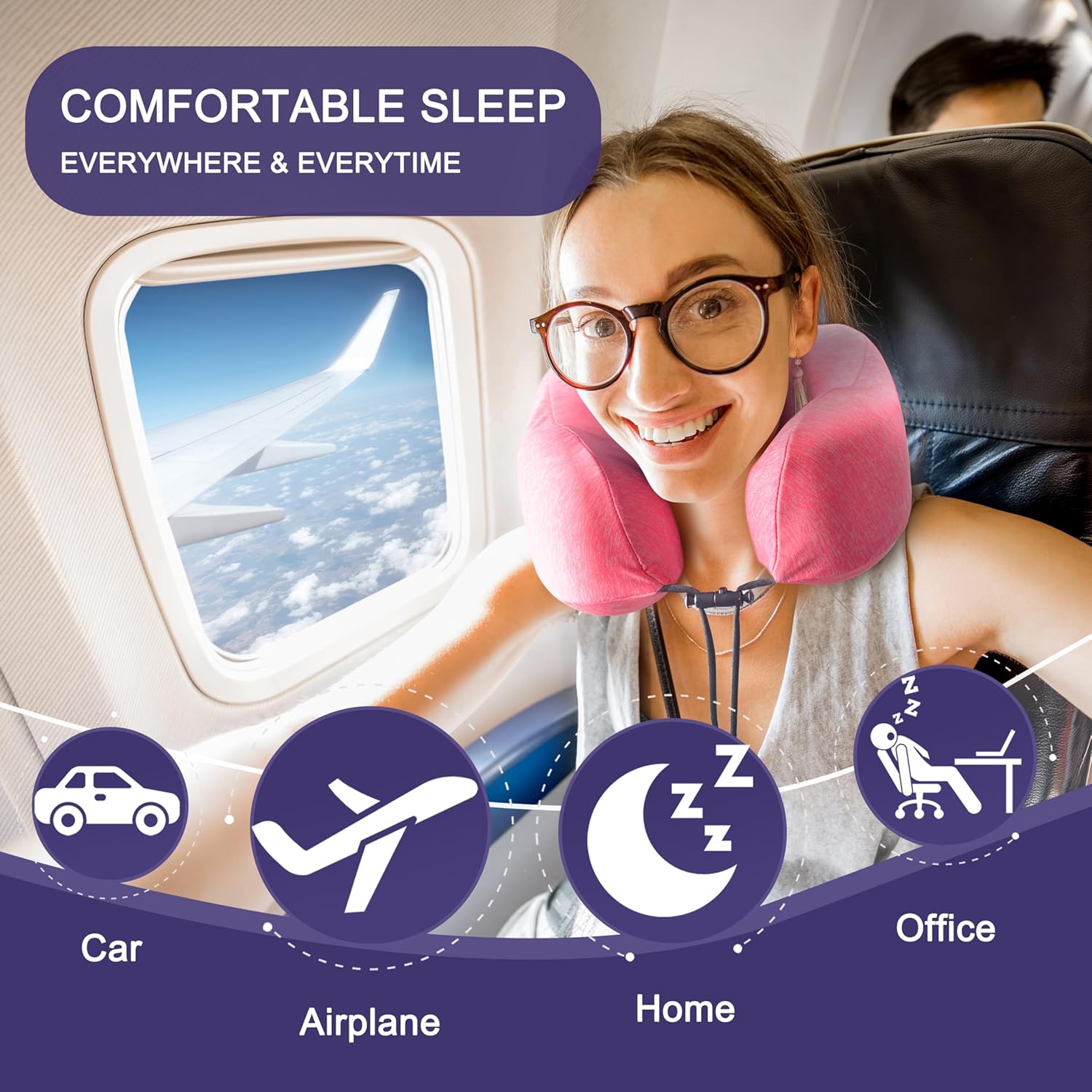 NECK PILLOW FOR TRAVELING – Unlike other travel pillows, This flight pillow can provide comfort support to protect the neck when you are sitting in the airplane, car, train, or bus.