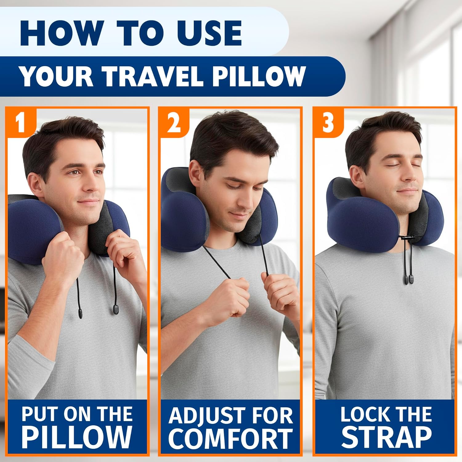 - Complete 4-in-1 Travel Kit: Includes one memory foam neck pillow, one soft eye mask, one pair of comfortable earplugs, and a waterproof carry bag—making it the ultimate companion for jet-lagged travelers, light sleepers, or anyone seeking portable comfort.