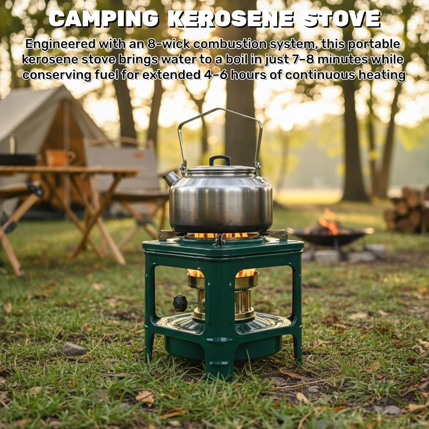 Engineered with an 8-wick combustion system, this portable kerosene stove brings water to a boil in just 7–8 minutes while conserving fuel for extended 4–6 hours of continuous heating. Suitable for camping, hiking, or survival use, it delivers fast cooking and reliable warmth anytime
