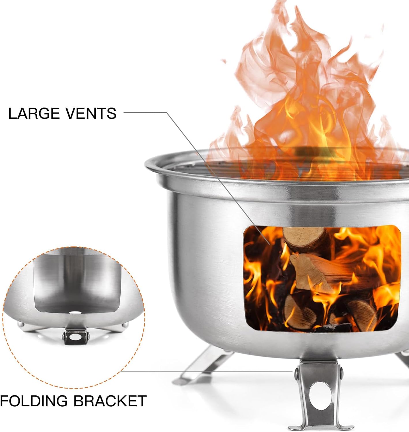The package includes one camping burning stove and one storage bag. Please note that the stove requires natural combustible materials such as wood, dry leaves, or small branches as fuel—it does not support liquid fuels or pressurized gas systems. Always ensure proper ventilation when using the stove, especially in enclosed spaces like tents, cabins, or vehicles, to avoid smoke buildup and maintain air quality.