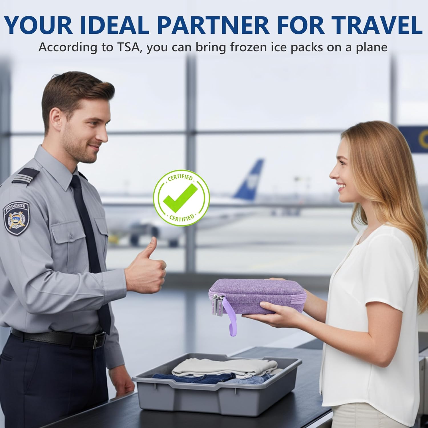 - TSA Approved Reusable Ice Packs: Comes with two 80g gel ice packs that meet TSA regulations for carry-on liquids. When frozen, they can remain in your bag during flight and provide reliable cooling support for up to 6–8 hours, making international and domestic travel more manageable.