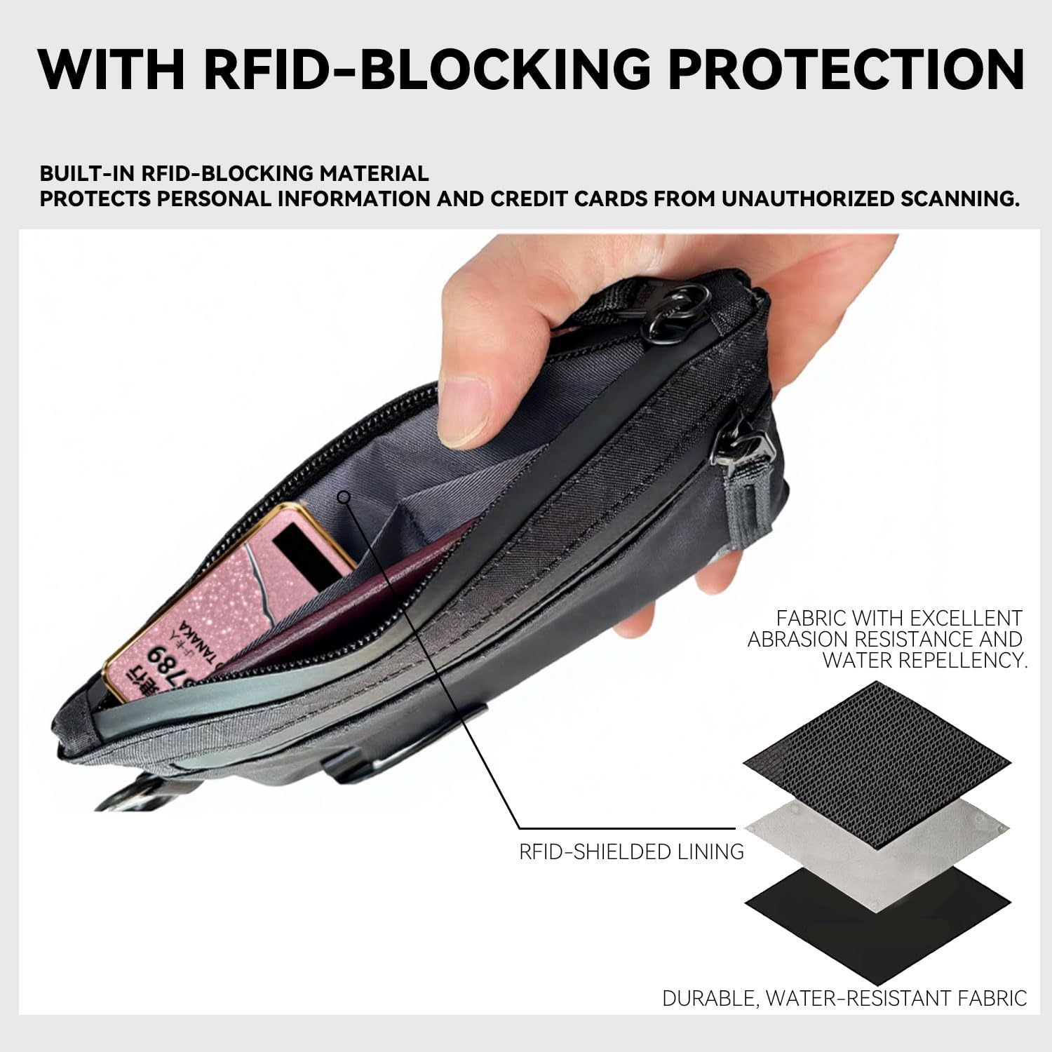 - Dedicated Phone Pocket: Includes a secure, shielded compartment sized to fit most smartphones, allowing you to carry your mobile device safely while maintaining easy access. This pocket also provides additional RFID protection for your phone if it has NFC capabilities or contactless payment features.