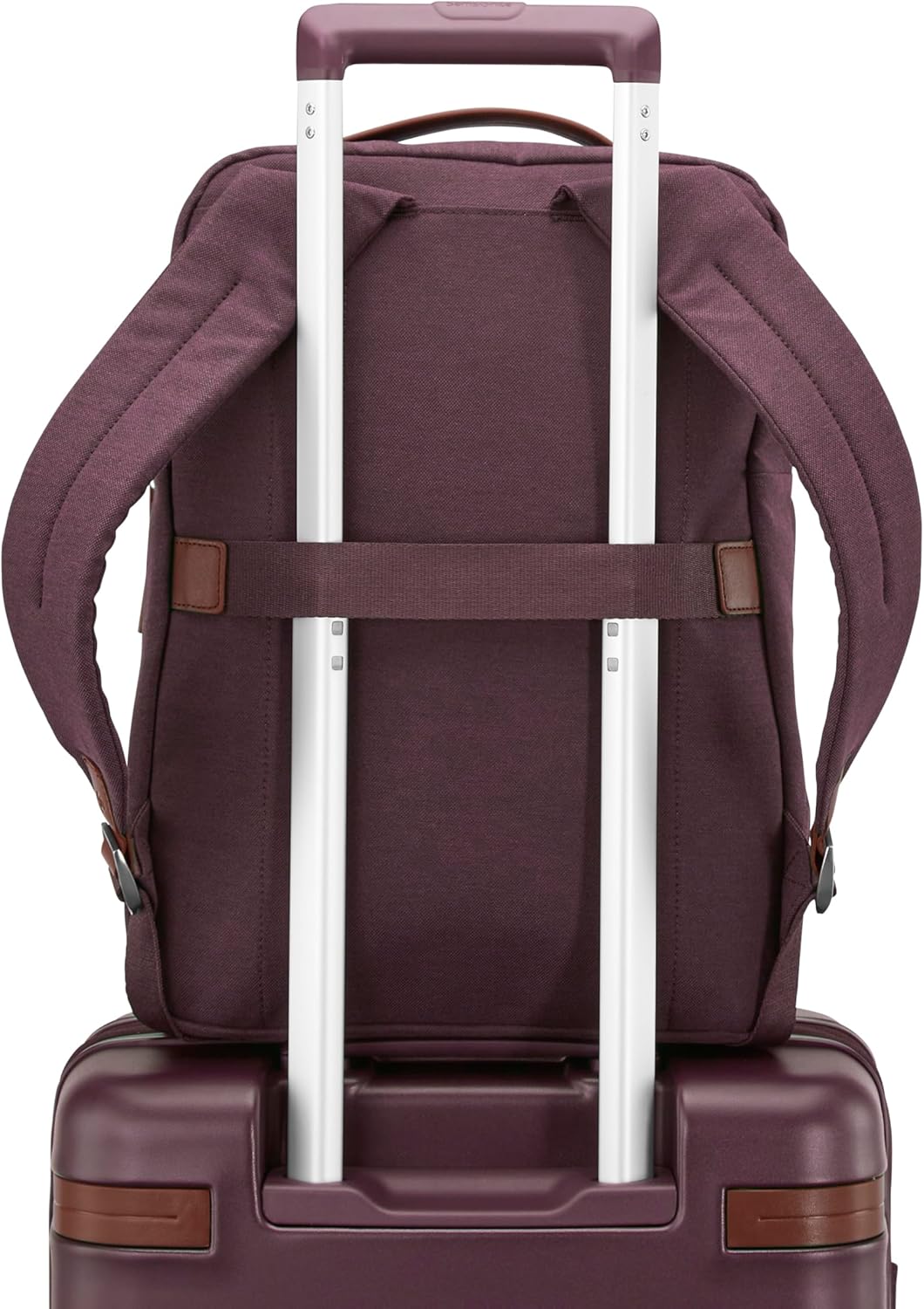 Its universal design makes it equally at home as a standalone carry-on for short trips or as an extension of your checked luggage when traveling internationally. Simply slip the StackIt Strap over any standard suitcase handle and walk through terminals with both bags rolling and your backpack secure on top. The merlot color delivers a refined look that works in boardrooms, coffee shops, and co-working spaces alike. Whether you’re catching a morning flight, heading to a client meeting, or exploring a new city, the Virtuosa moves with you—lightweight, stylish, and built to last.