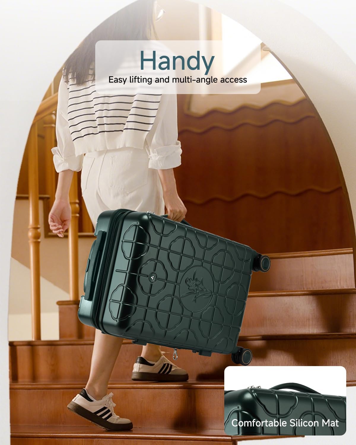 PERFECT CARRY-ON SIZE – This carry on luggage features a soft top handle, telescopic handle, and comfortable silicone grip for easy lifting and smooth mobility. The compact design allows nesting and stacking to save space at home or in transit. Designed to meet most airline carry-on requirements, this 20″ suitcase is ideal for short trips, business travel, or as a secondary bag. Lightweight yet ultra-sturdy for easy handling.