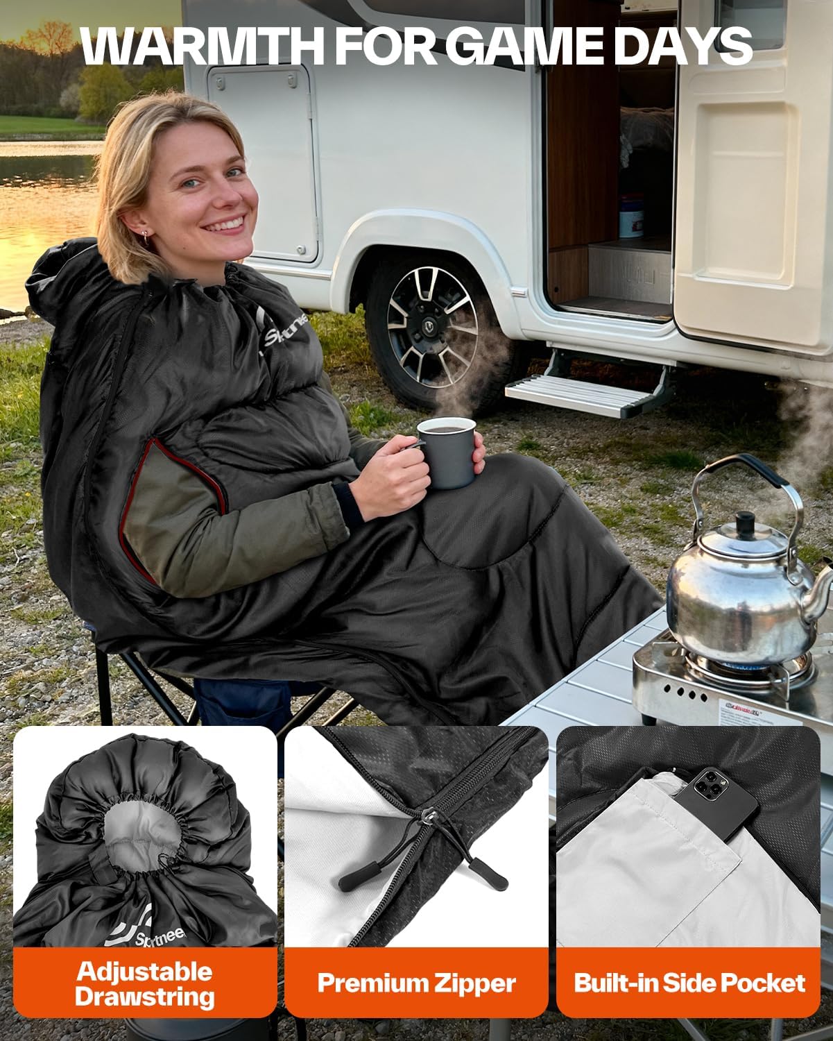 - Effective Warmth Retention: Designed to lock in body heat tightly, this sleeping bag blocks cold air and wind, ensuring you stay warm during long periods of sitting. Perfect for early-morning games, outdoor gatherings, or chilly evenings under the stars.