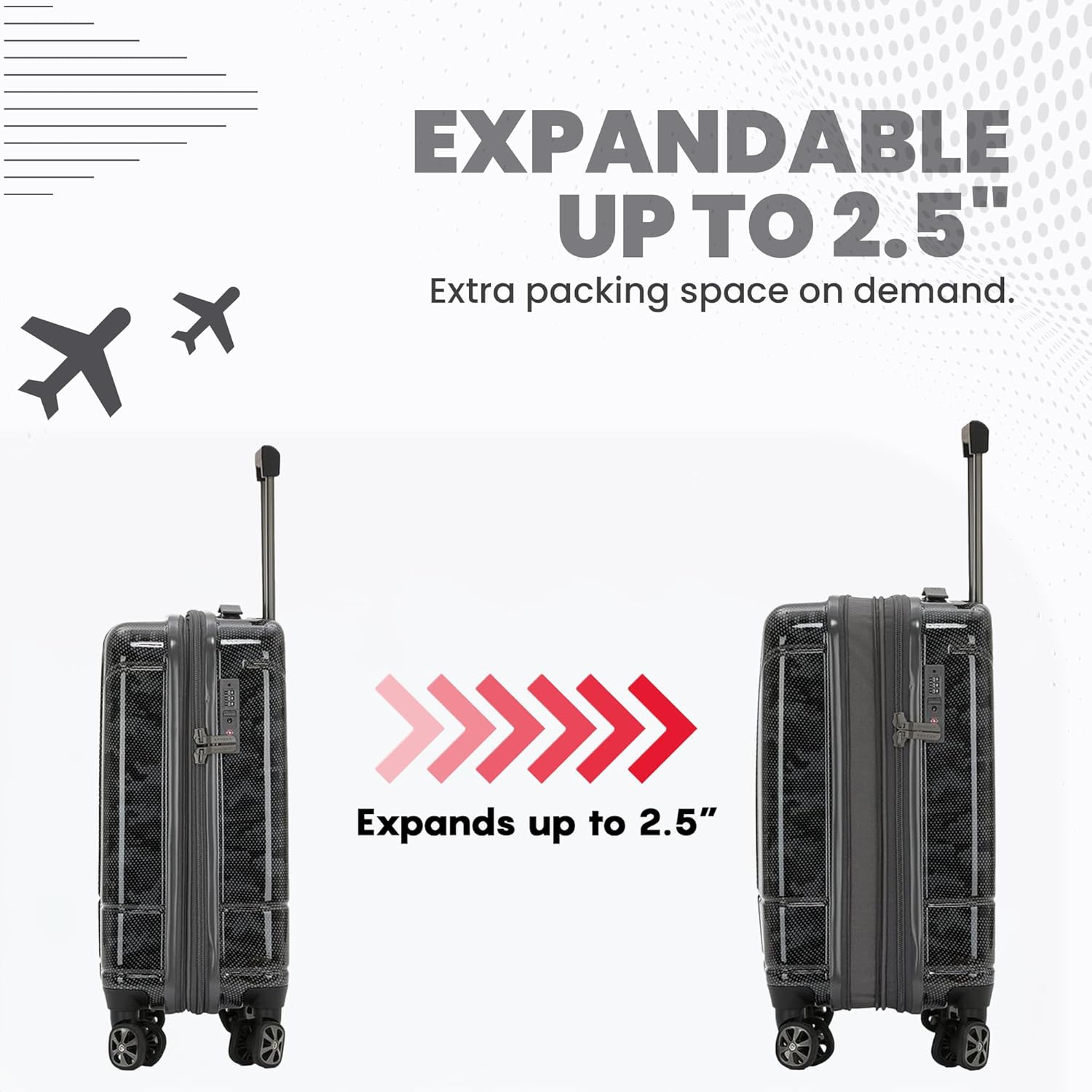 Convenient Design: Two carry handles provide maximum convenience when lifting a packed case, and this suitcase also has an expandable design that allows a full 2.5” expansion for additional packing capacity