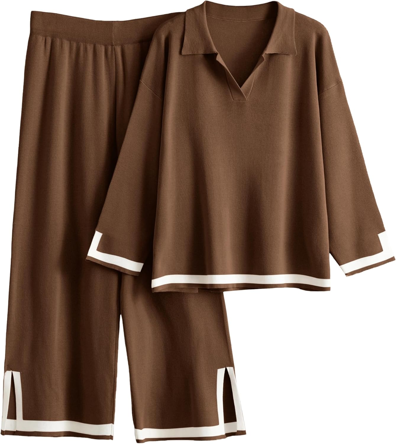 This v neck lapel collar 3/4 sleeve sweater sets great for beach vacation and lounge wear, super comfy and soft.