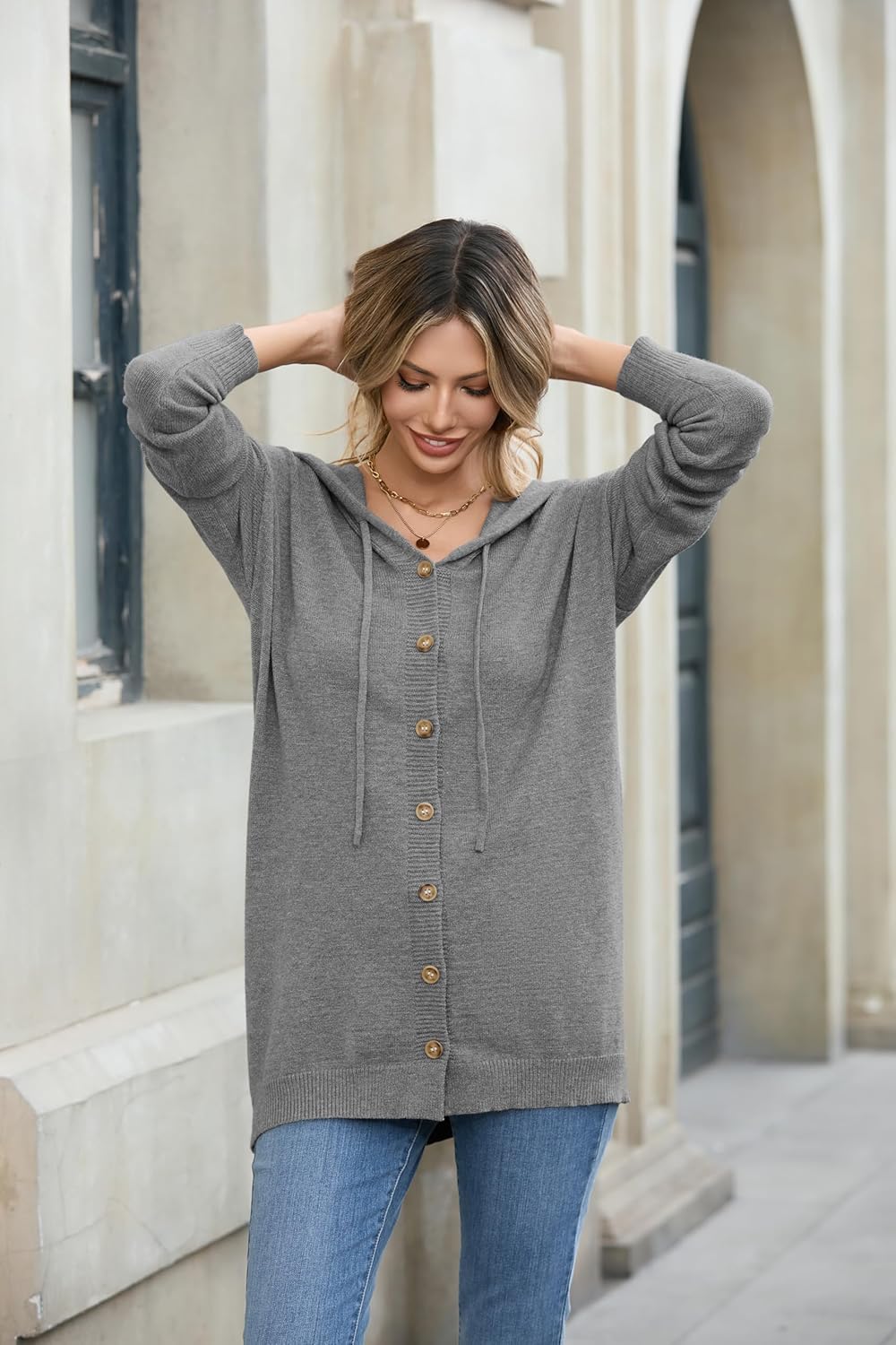 Travelers will appreciate how easily this sweater packs down without losing shape. Its hood not only provides warmth but also offers a quick solution for light insulation or even a temporary sleep aid mid-flight. Whether you’re running errands, heading to a café, or simply relaxing at home, this cardigan adapts to your lifestyle with ease.
