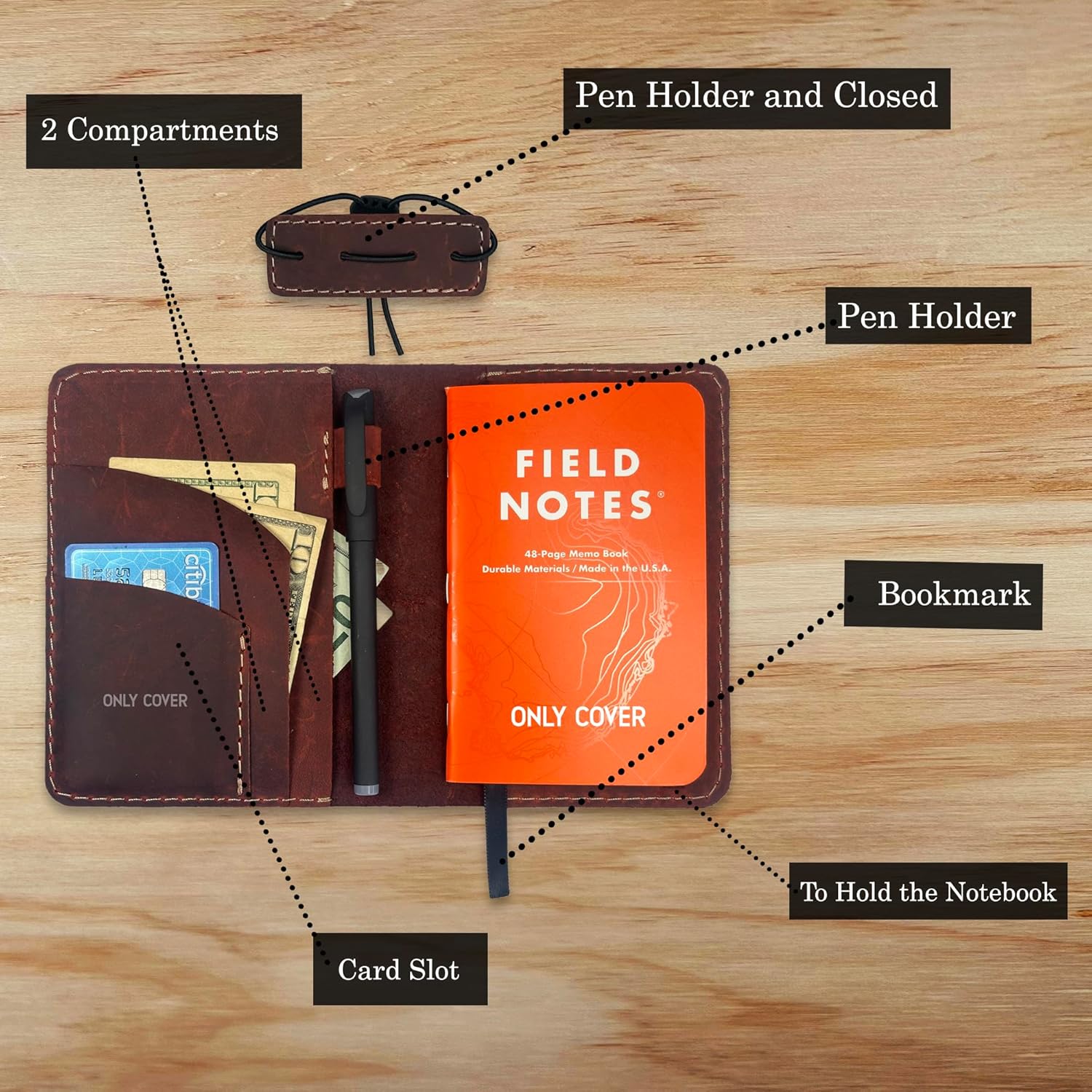 • Pen Holder & Card Slot: Includes one dedicated pen holder and a convenient card slot for IDs, credit cards, or business cards, keeping essentials within easy reach.