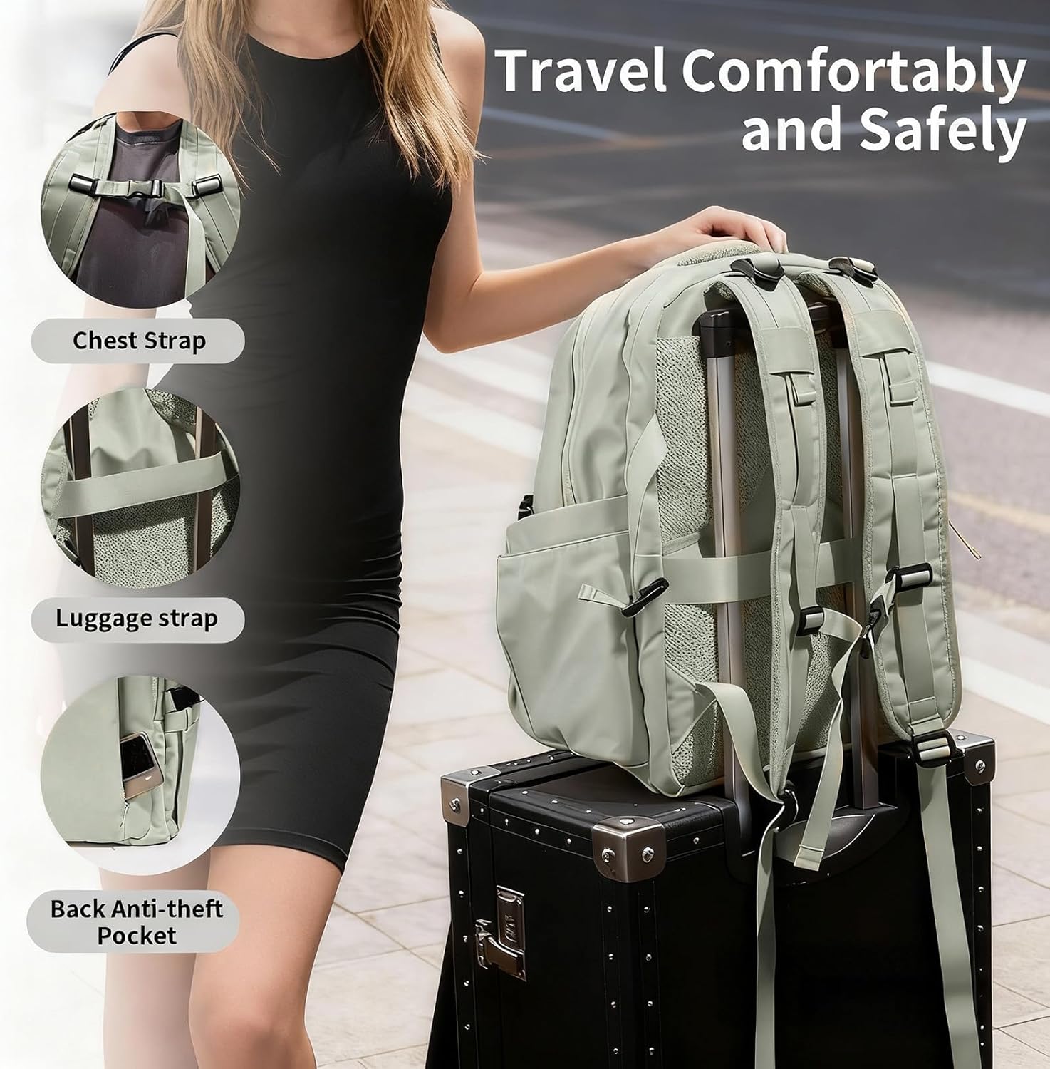 • Integrated Luggage Strap: A secure attachment loop allows you to clip the backpack onto rolling suitcase handles, transforming it into a coordinated travel system. This simplifies navigation through crowded airports or busy city streets while keeping your hands free.