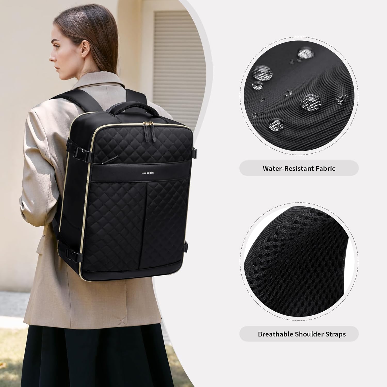 Be Handbag or Backpack: With padded adjustable shoulder straps and 2 padded carry handles, this women’s airplane travel backpack easily transforms this student travel backpack from a handbag to a backpack. Luggage straps on the women’s work bag provide more flexibility in carrying experience. The personal item travel backpack has a padded top and side carry handle