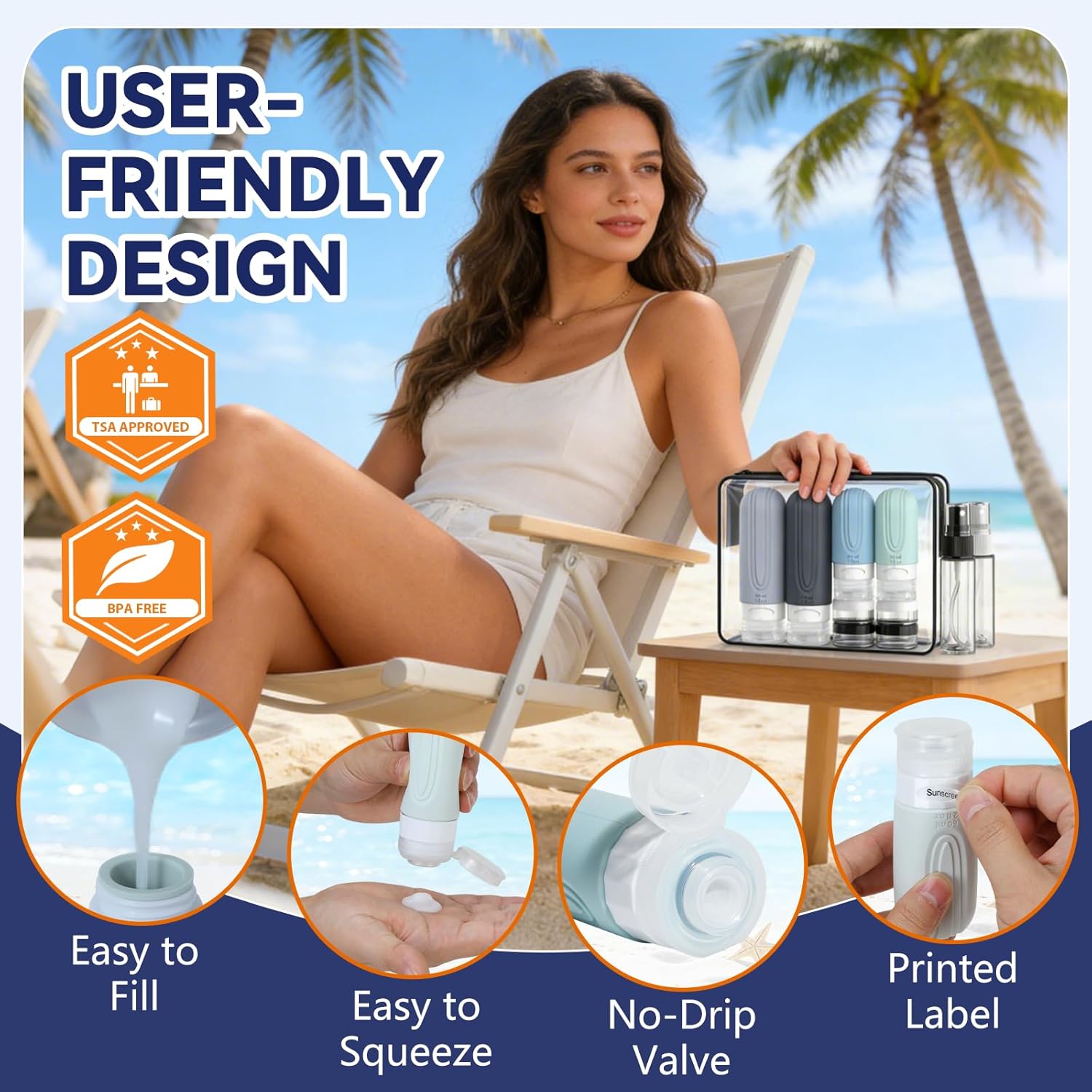【TSA APPROVED】These TSA-approved travel Bottles meet all TSA carry-on standards to help you get through security. It also comes in a clear, sturdy zippered pouch for quick access through airport security