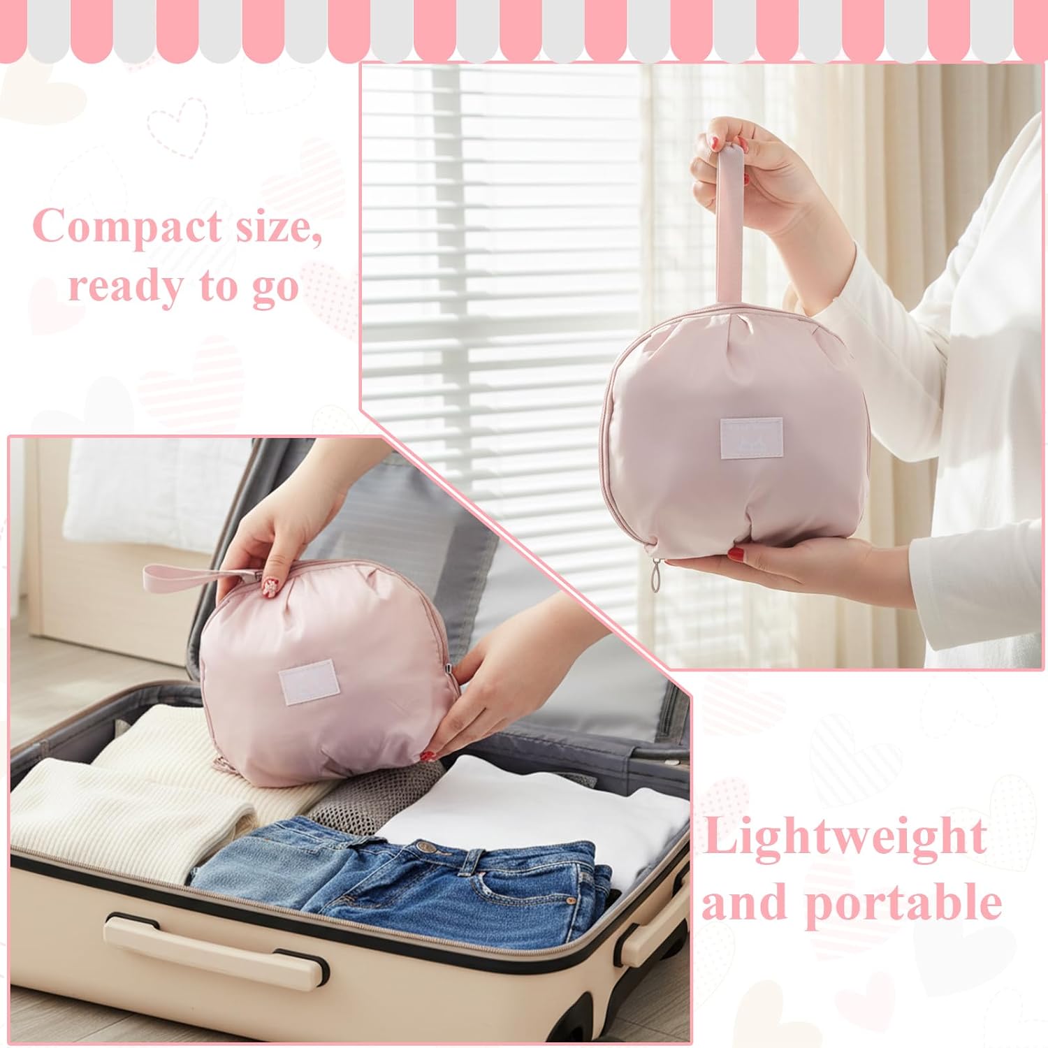 【Compact Size for Maximum Storage】Lingerie travel bag measures 22*21.5cm/8.66*8.46in,with a well-designed compartment layout that maximizes space making it compact and portable.When not in use, it folds flat for easy storage