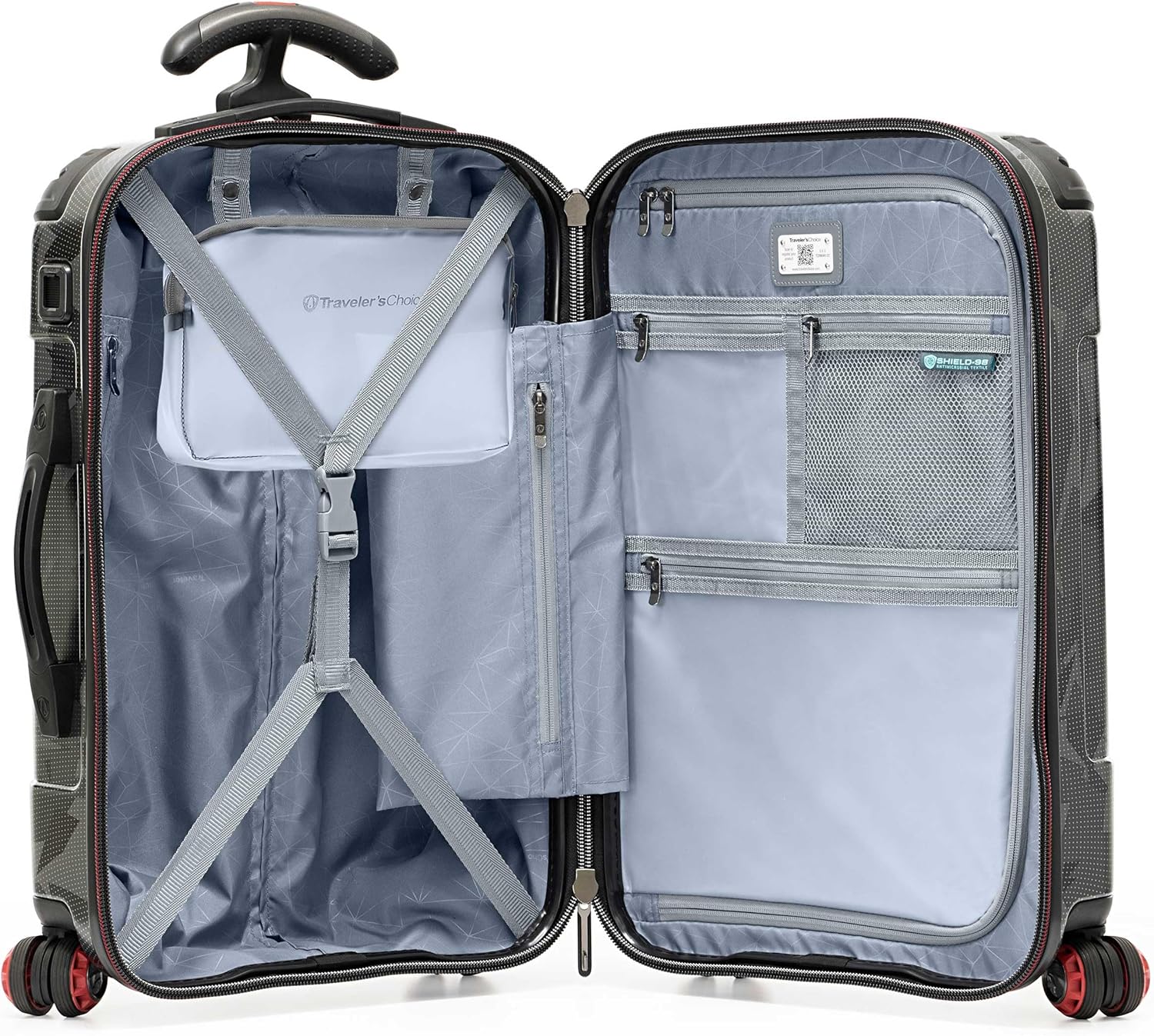 The Traveler’s Choice Maxporter II Polycarbonate Hardside Trunk with Spinner Wheels is a premium carry-on luggage designed for modern travelers who value durability, security, and convenience. This 22-inch suitcase combines a sleek trunk-style exterior with advanced protective features to safeguard belongings during frequent use or air travel. Engineered for both style and function, it includes anti-theft zippers, TSA-approved locking, and an integrated charging system—making it ideal for business trips, weekend getaways, or extended journeys. Its polycarbonate hard shell resists impacts while maintaining lightweight portability. The thoughtful interior layout with adjustable dividers ensures organization, while the patented spinner wheels deliver smooth maneuverability across any terrain. Whether navigating airport terminals or hotel hallways, the Maxporter II offers a secure, user-friendly travel experience.