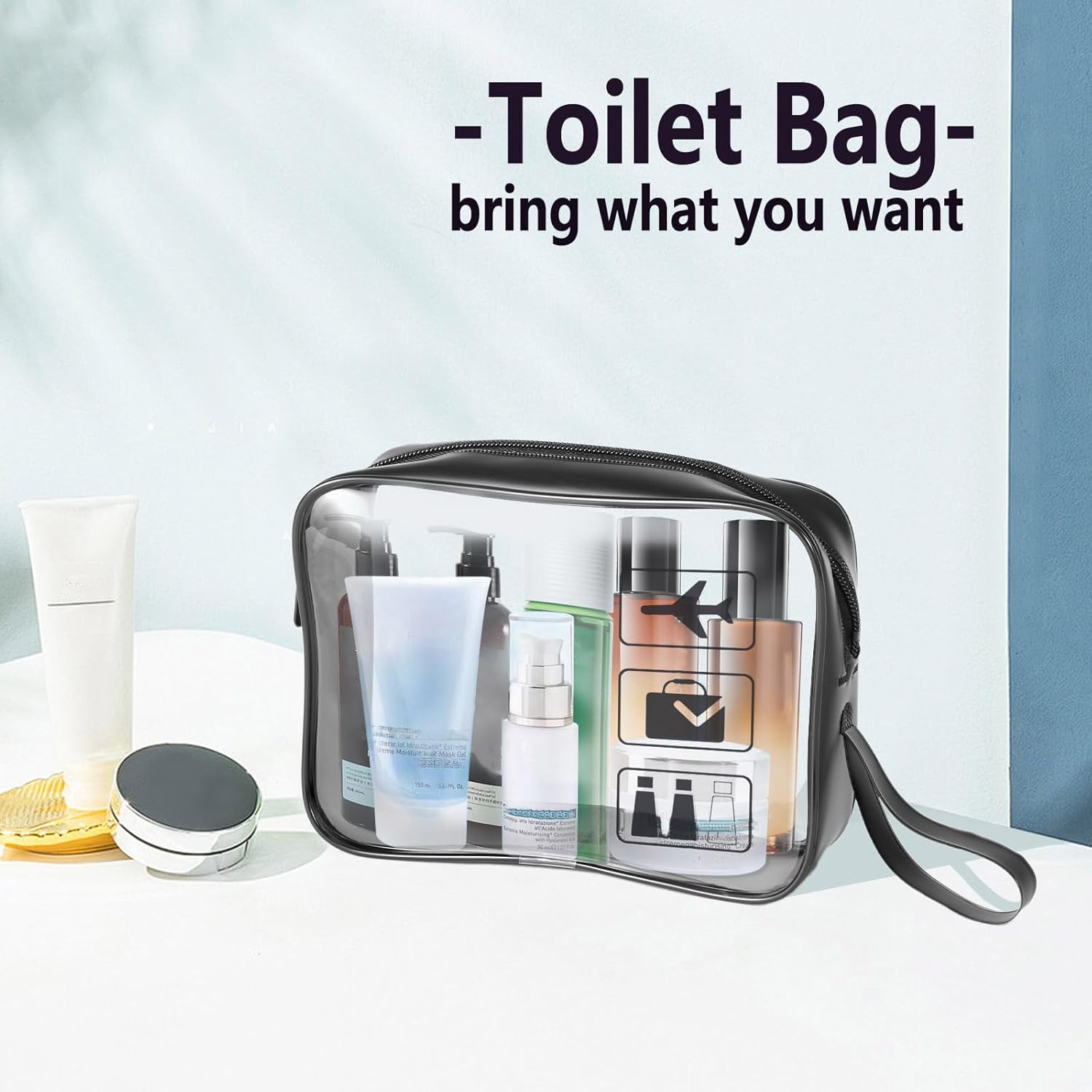 Waterproof for Storage – The clear cosmetic bag is made of 0.5 mm waterproof PVC