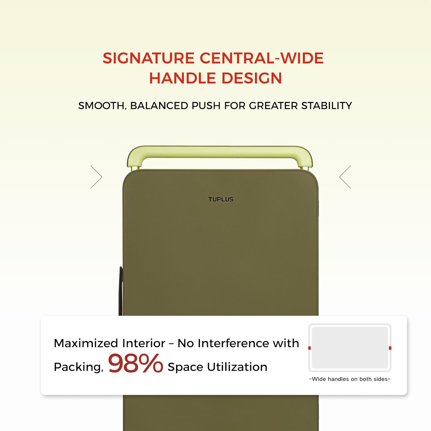BALANCED MOVEMENT & MAXIMIZED STORAGE: The wide handle frame is strategically embedded at the center on both sides, ensuring enhanced stability while pushing and freeing up additional interior space for optimized storage