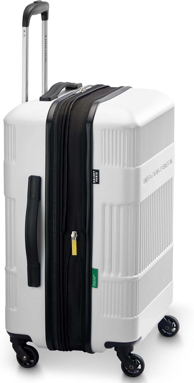 United Colors of Benetton Ribbed Hardside Expandable Luggage with Spinner Wheels, White, Carry-On 20 Inch