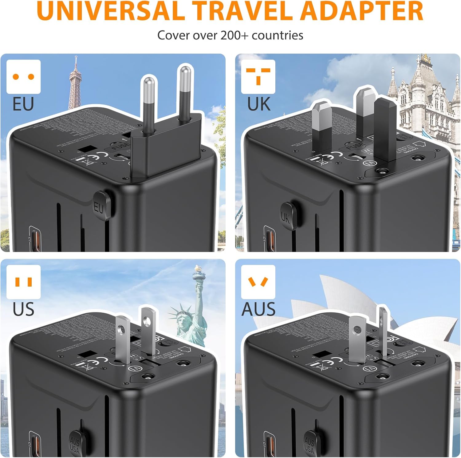 - Package Contents: One universal travel adapter only. No additional cables, converters, or accessories are included.