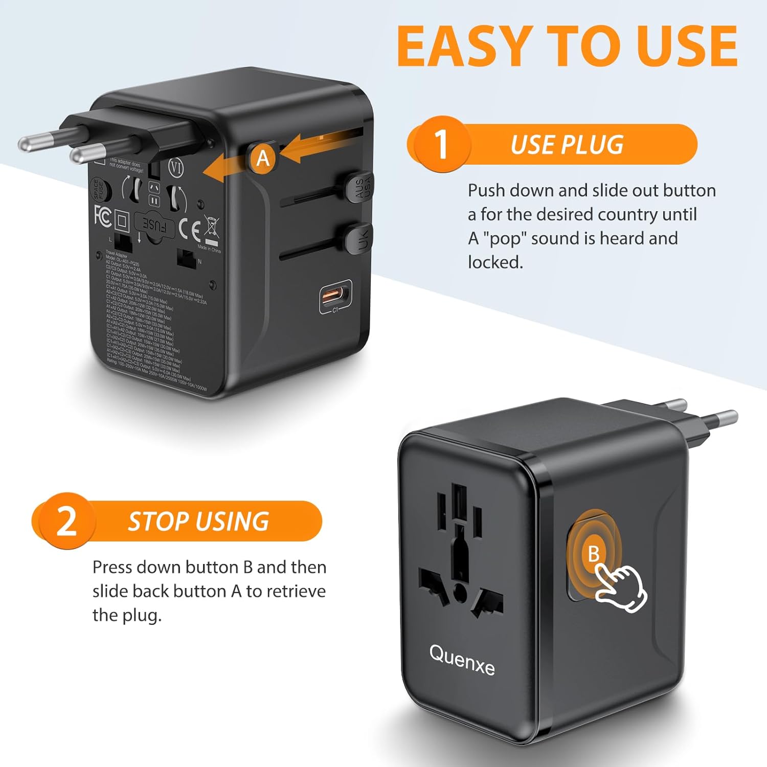 Say goodbye to tangled cables and bulky chargers. This universal travel adapter features a cord-free design that fits neatly into backpacks, luggage, or carry-on bags. Its lightweight construction adds minimal weight to your travel essentials while maximizing functionality.