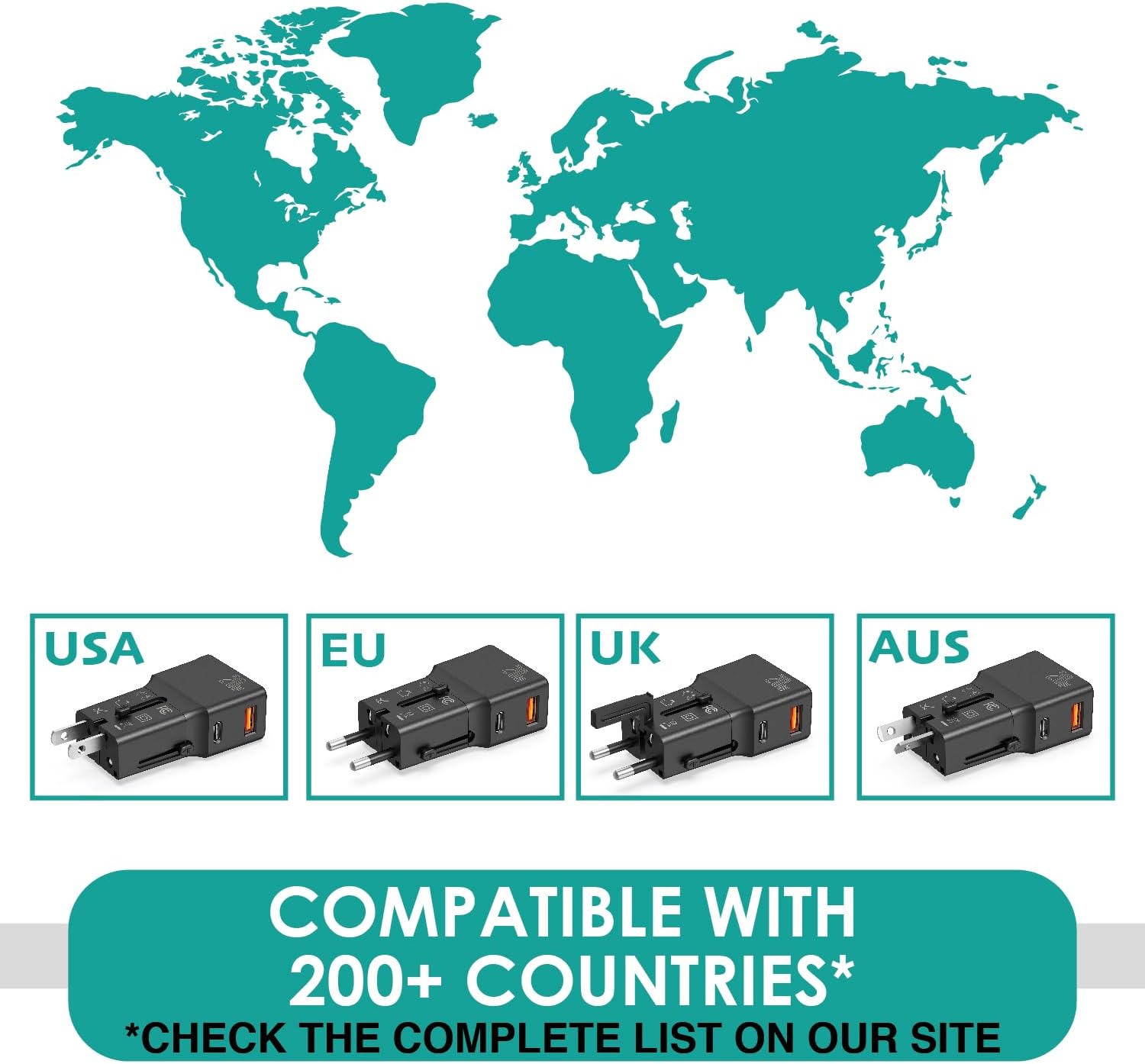 Travel without limits with the OVERMUST Universal Adapter; compatible with outlets in more than 200 countries, it guarantees you global connectivity. Whether you’re in the US, Europe, UK, or Australia, stay connected and ready to explore the world; ideal for modern adventurers