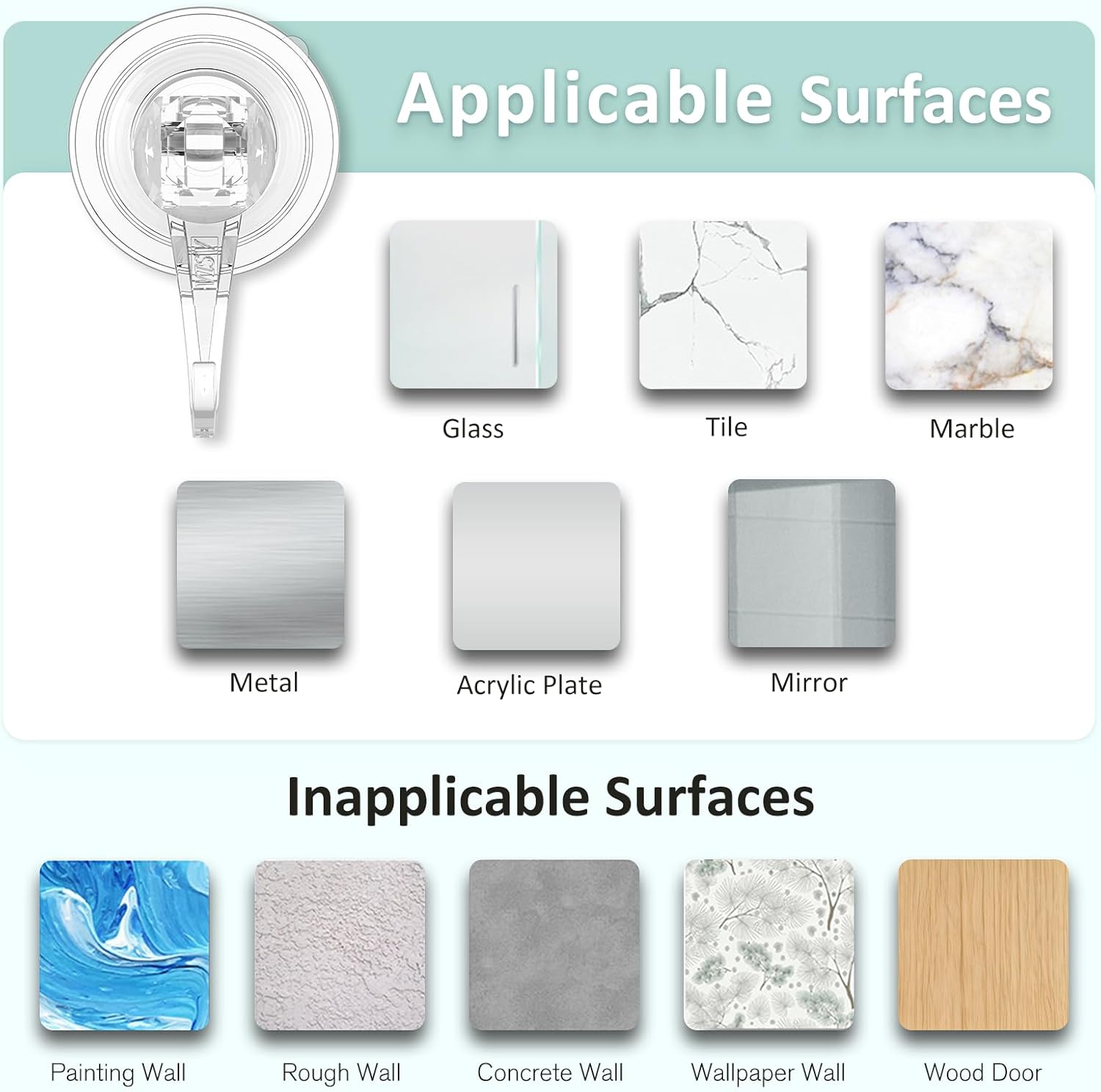 Wildly Uses: Strong suction hooks can securely sucks on tile, window, mirror, glass, metal, plastic and other smooth flat surfaces; organize bathroom, kitchen, livingroom, camper, trailer, RV, hotel, store or dorm; such an essential home accessory and really serve its purpose