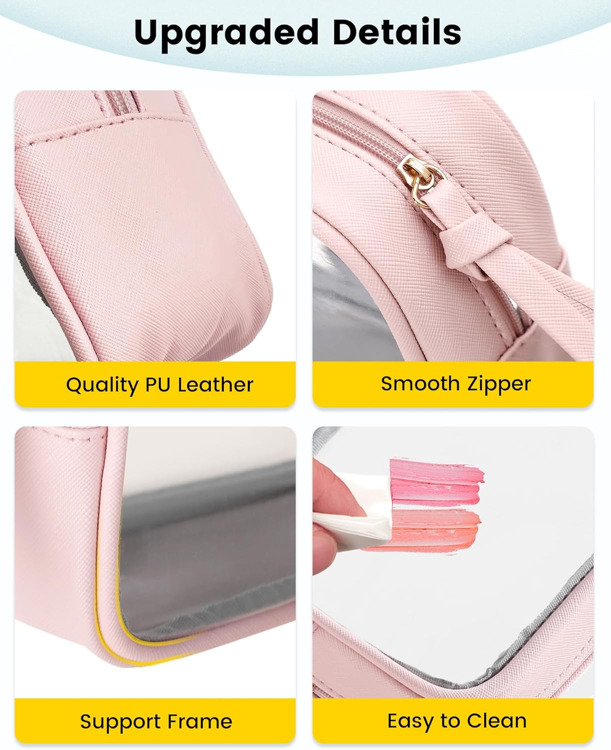 Clear side for easy location: Both sides of the travel makeup bag are made of PVC material, making it easier to spot your items and get through security checks quickly. Also, the PVC surface is easy to clean