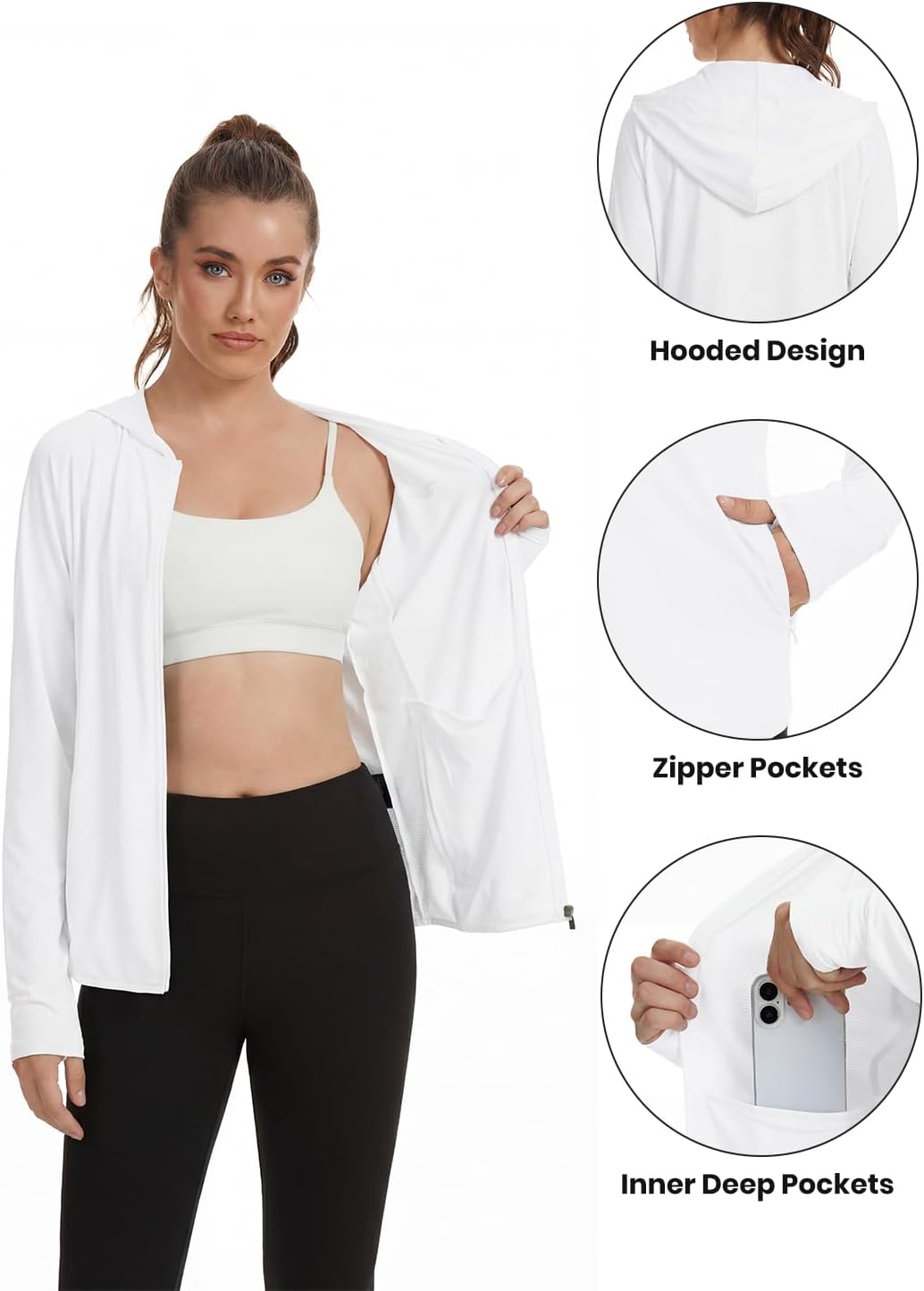 DEHORU Women UPF 50+ Sun Protection Hoodie Jacket Lightweight Zip Up Long Sleeve Shirts Hiking Outdoor with Pocket