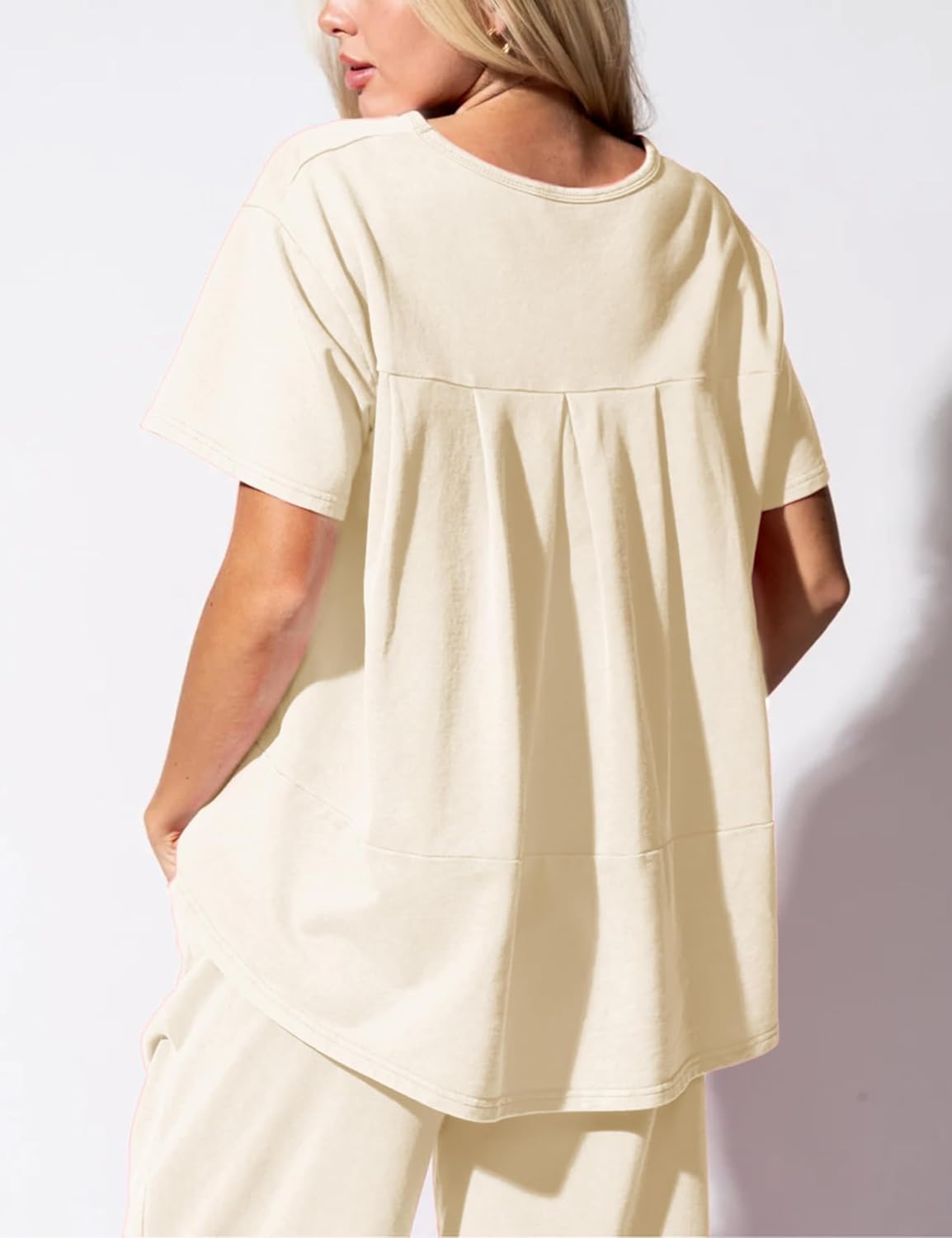 - Short Sleeve Top: Designed for breathability and freedom of movement, the top suits warm weather, air-conditioned spaces, or relaxed indoor activities.