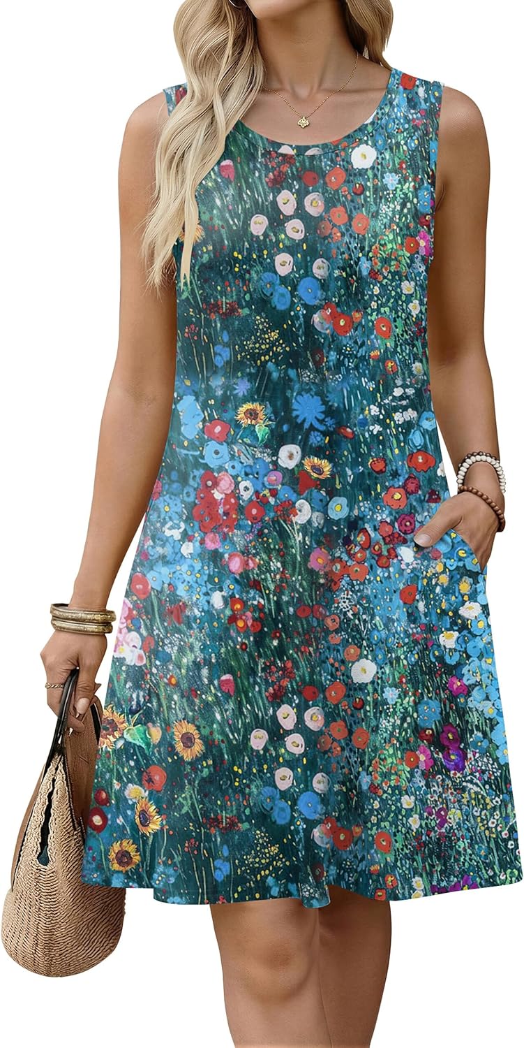 Zeagoo Summer Dresses For Women 2026 Sleeveless Aline Flowy Dress With Pockets