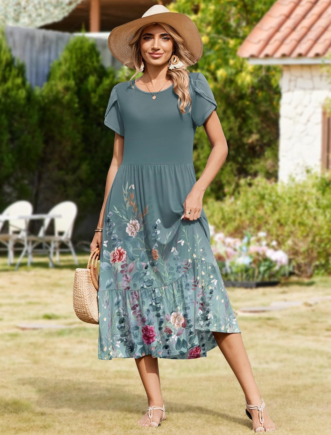 The Zeagoo Women’s Summer Midi A-Line Dress is a stylish and functional short-sleeve sundress designed for casual comfort, vacation wear, and warm-weather exploration. Featuring a flowy tiered silhouette, this dress combines bohemian charm with practicality—making it an ideal choice for beach outings, city strolls, or relaxed daytime events. Its knee-length midi cut flatters a variety of body types, while the swing fit ensures ease of movement throughout your day. With side pockets that offer secure storage for small essentials, this dress eliminates the need for a bag during quick errands or seaside lounging.
